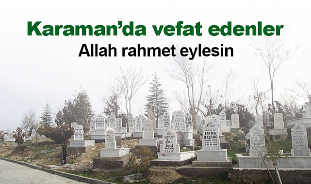 Karaman Belediyesi Mezarlık Bilgi Sistemi, Karaman'da 21 Mart 2024 tarihinde vefat eden hemşehrilerimizin bilgilerini paylaştı.Paylaşılan bilgilere göre, 3 hemşehrimiz vefat etti. Vefat eden hemşehrimizin bilgileri şu şekilde: