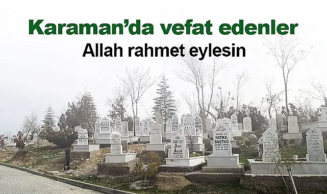 Aslen Başkışlalı olup Çeltek Mahallesinde ikamet etmekte olan Abdullah Baş (88) vefat etmiştir. Cenazesi 8 Şubat Perşembe günü öğle namazına müteakip musalladan kaldırılacak. Merhumun cenazesi, Karaman Şehir Mezarlığı 40 Nolu Ada'ya defnedilecek.Aslen Karapınarlı olup Gevher Hatun Mahallesinde ikamet etmekte olan Aysel Eser (76) vefat etmiştir. Cenazesi 8 Şubat Perşembe günü öğle namazına müteakip musalladan kaldırılacak. Merhumun cenazesi, Karaman Şehir Mezarlığı 34 Nolu Ada'ya defnedilecek.Aslen Yukarıkızılca Köyünden olup Topucak Mahallesinde ikamet etmekte olan Miyase Yavuz (67) vefat etmiştir. Cenazesi 8 Şubat Perşembe günü öğle namazına müteakip musalladan kaldırılacak. Merhumun cenazesi, Karaman Şehir Mezarlığı 36 Nolu Ada'ya defnedilecek.Karamanhaberleri.com olarak, vefat eden hemşehrilerimize Allah'tan rahmet, yakınlarına başsağlığı dileriz.