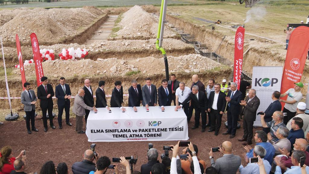 Karaman'da KOP ( Konya Ovası Projesi) Elma Borsası, Elma Sınıflandırma ve Paketleme Tesisi'nin temel atma töreni gerçekleştirildi.