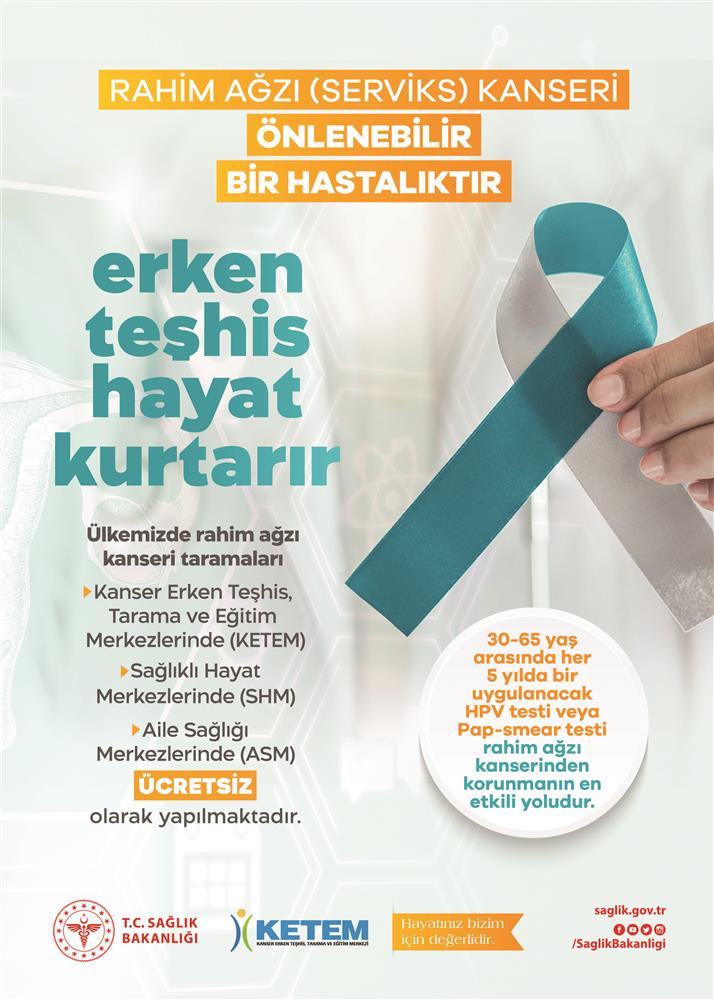 Büyük çoğunluğu önlenebilir bir hastalık türü olan kansere karşı toplumsal bilinci artırmak amacıyla, her yıl ocak ayında rahim ağzı (serviks) kanseri farkındalık çalışmaları yürütülüyor. Bu kapsamda Karaman'daki Sağlıklı Hayat Merkezi’nde hizmet veren Kanser Erken Teşhis Tarama ve Eğitim Merkezi önünde, Halk Sağlığı Hizmetleri Başkanlığı Birimleri çalışanlarının katılımı ile farkındalık balonu uçuruldu.Ayrıca Karaman Eğitim ve Araştırma Hastanesinde sağlık personeli ve taramaya uygun olan vatandaşlar bilgilendirilerek kanser taramasından geçirildi.Karaman İl Sağlık Müdürlüğünden konuyla ilgili yapılan açıklamada ise, "Kanser beraberinde getirdiği sağlık sorunlarının yanı sıra, maddi ve manevi yönden uzun süreli mücadele gerektiren bir hastalıktır. Her geçen gün daha fazla insan, hareketsiz yaşam tarzı, yanlış beslenme, olumsuz çevre koşulları, alkol ve tütün kullanımı ile kanserin en önemli risk faktörlerine maruz kalmaktadır. Sağlıklı beslenme ve hareketli yaşam ile kanserlerin 1/3’den fazlası engellenebilir. Ülkemizde rahim ağzı kanseri taramaları ÜCRETSİZ olarak Kanser Erken Teşhis, Tarama ve Eğitim Merkezlerinde (KETEM) ve Aile Sağlığı Merkezlerinde (ASM) yapılmaktadır.Sağlık Müdürlüğü olarak diyoruz ki; Sakın geç kalma, erken gel." ifadelerine yer verildi.