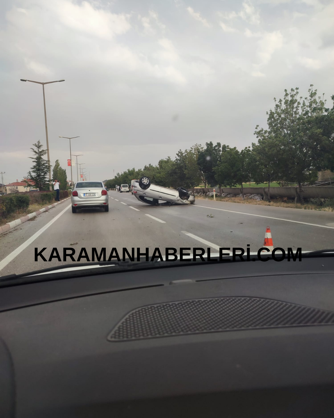 Karaman’da bir araç seyir halinde giderken takla attı.