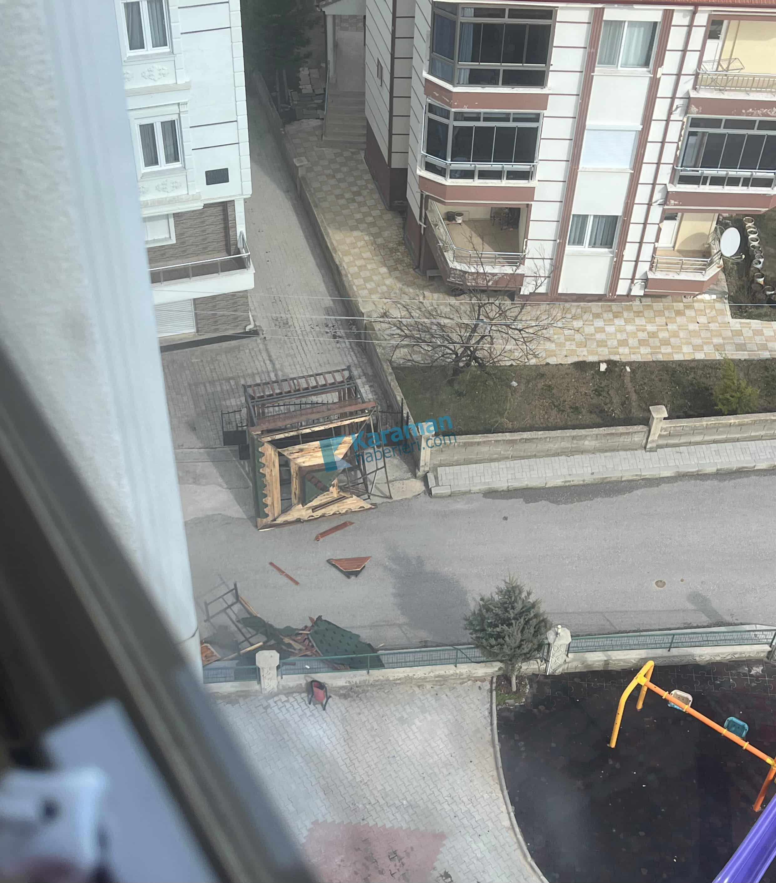 Fırtınanın etkisiyle bazı apartmanların çatı kaplamaları koparak çevreye savruldu. Mahalle aralarında bulunan bir sitenin kamelyası ise rüzgâra dayanamayarak devrildi. Ahşap parçaların yol ve kaldırım üzerine saçıldığı görülürken, kamelyanın metal aksamı da hasar aldı. Olay sırasında bölgede kimsenin bulunmaması olası bir faciayı önledi.