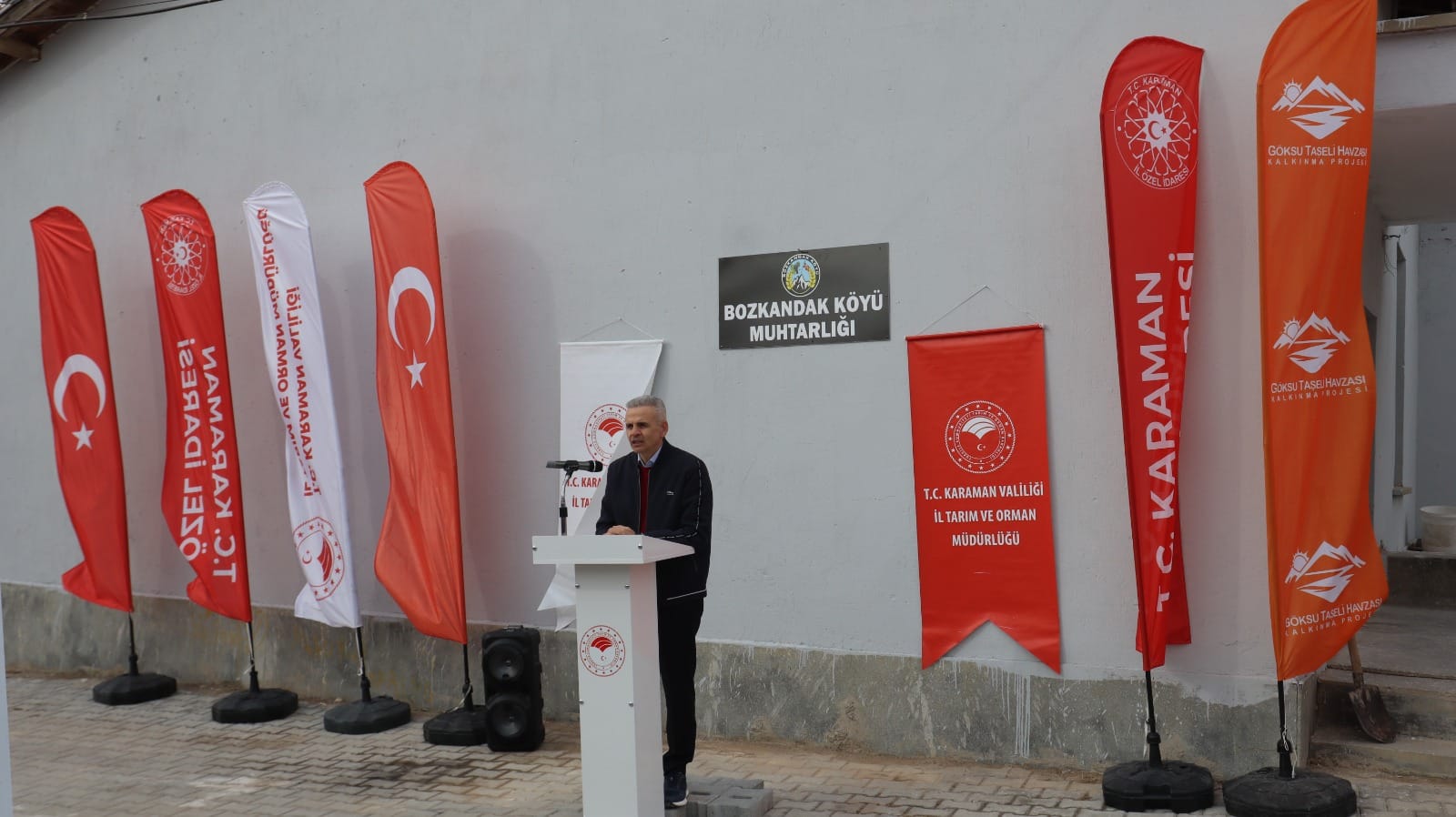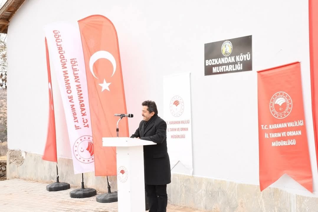 Karaman'ın Bozkandak Köyü, tarımsal kalkınma için büyük bir projeye ev sahipliği yaptı. Tarım ve Orman Bakanlığı Tarım Reformu Genel Müdürlüğü tarafından yürütülen Göksu Taşeli Havzası Kalkınma Projesi kapsamında, Karaman İl Tarım ve Orman Müdürlüğü ve Karaman İl Özel İdaresi iş birliğiyle geliştirilen Güneş Enerjili Tarımsal Sulama Sistemi açıldı. Proje, modern tarım altyapısının güçlendirilmesi ve bölgedeki üreticilere sürdürülebilir destek sağlanması amacıyla hayata geçirildi.9.528 Metre Şebeke Hattı ve GES SistemiToplamda 105 hektar alanda tarımsal sulama altyapısı inşa edilen projede, 9.528 metre kapalı sistem isale ve şebeke hattı oluşturuldu. Ayrıca, 130 kWe gücünde güneş enerjisi sistemi (GES) ile desteklenen proje sayesinde üreticiler, yenilenebilir enerji ile daha ekonomik ve çevre dostu sulama imkanına kavuştu.Açılış Töreninde Geniş KatılımBozkandak Köyü'nde düzenlenen açılış programına geniş bir katılım sağlandı. Karaman Valisi Mehmet Fatih Çiçekli, AK Parti Karaman Milletvekilleri Selman Oğuzhan Eser ve Osman Sağlam, İl Jandarma Komutanı Kd. Albay Osman Saygılı, İl Genel Meclisi Başkanı Tamer Yıldızbaş, AK Parti Karaman Merkez İlçe Başkanı Süleyman Kazanç, Ziraat Odası Başkanı Mehmet Bayram ve çok sayıda üretici törende yer aldı.Program, Bozkandak Köyü Muhtarı Bilal Uysal’ın teşekkür konuşması ile başladı. Ardından İl Özel İdaresi Genel Sekreteri Ali Yener Terlemez ve Karaman İl Tarım ve Orman Müdürü Hatice Bulut konuşmalar gerçekleştirdi.İl Tarım Müdürü’nden Başarı Vurgusuİl Müdürü Hatice Bulut, projeyle ilgili konuşmasında şu ifadelere yer verdi:“Göksu Taşeli Havzası Kalkınma Projesi kapsamında Karaman, en çok proje ve yatırım gerçekleştiren il olarak birincilik ödülünü aldı. Bu başarımızda emeği geçen tüm paydaşlara şükranlarımı sunuyorum. Modern sulama altyapısı ve yenilenebilir enerji kaynaklarının kullanımı, çiftçilerimizin verimliliğini artırırken, çevreye duyarlı bir üretimi mümkün kılacaktır.”Vali Çiçekli: "Sürdürülebilir Tarımın Temelini Atıyoruz"Karaman Valisi Mehmet Fatih Çiçekli, törende yaptığı konuşmada, bölgedeki tarımsal kalkınmanın önemine vurgu yaptı:“Bu proje, sadece Bozkandak Köyü için değil, Karaman’ın genel tarım potansiyelinin gelişimi için de büyük bir adımdır. Güneş enerjisi ile desteklenen bu sistem, hem enerji maliyetlerini azaltacak hem de sürdürülebilir bir üretim modeli sunacaktır. Karaman’ın tarım, hayvancılık, tarih ve turizmdeki potansiyelini artırmak için çalışmaya devam edeceğiz.”GES Destekli Sulama Sistemi: Çiftçilerin GüvencesiProjenin sağladığı yenilikler: