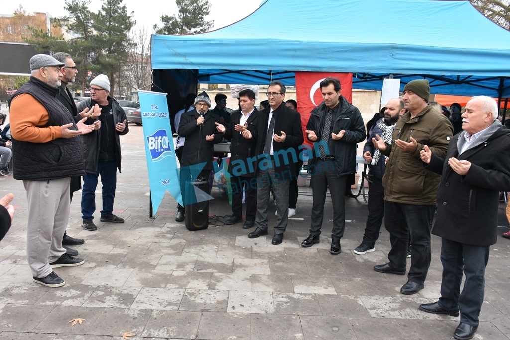 Karaman’da, Gazze’deki mazlumlara destek olmak ve yaraları birlikte sarmak amacıyla Bifa Mesleki Eğitim Merkezi tarafından gıda kermesi düzenlendi.Aktekke Meydanı’nda gerçekleştirilen etkinliğe, İl Millî Eğitim Müdürümüz Mehmet Çalışkan, İl Millî Eğitim Müdür Yardımcımız İsmail Kılınç, sivil toplum kuruluşu temsilcileri, okul yöneticileri, öğretmenler, öğrenciler ve vatandaşlar katıldı.Okul Müdürü Recep Azakar, kermesin amacının Gazze’de yaşanan insanlık dramına duyarlılığı artırmak ve ihtiyaç sahiplerine bir nebze de olsa katkı sunmak olduğunu belirtti. Azakar, “Bu organizasyon, öğrencilerimizin ve halkımızın duyarlılığıyla daha da anlam kazandı. Destek veren tüm misafirlerimize teşekkür ediyoruz.” ifadelerini kullandı.Kermeste öğrenciler, öğretmenler ve gönüllü vatandaşlar tarafından hazırlanan çeşitli gıda ürünleri satışa sunuldu. Etkinlikten elde edilen tüm gelirin, Gazze’deki ihtiyaç sahiplerine ulaştırılmak üzere bağışlanacağı belirtildi.