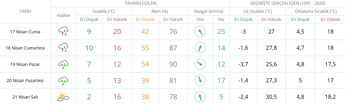 Karaman’da hafta sonu dışarı çıkmayı planlayan vatandaşlar için hava durumu uyarısı geldi. Son tahminlere göre şehir genelinde cuma gününden itibaren yağışlı sistem etkisini gösterecek. Cumartesi ve pazar günleri yağışların daha belirgin hale gelmesi bekleniyor.Sıcaklıklarda da dikkat çeken düşüş yaşanacak. Hafta sonu en yüksek sıcaklıkların 12 ila 16 derece arasında seyretmesi, gece saatlerinde ise 5 ila 7 dereceye kadar gerilemesi öngörülüyor. Nem oranındaki artış ve zaman zaman etkili olacak rüzgar nedeniyle hava daha serin hissedilecek.CUMA GÜNÜ SAĞANAK BAŞLIYOR17 Nisan Cuma günü kent genelinde gök gürültülü sağanak yağış bekleniyor. Sıcaklık 9 ile 20 derece arasında değişecek.HAFTA SONU YAĞIŞ GÜÇLENİYOR18 Nisan Cumartesi günü gök gürültülü sağanak yağış etkisini sürdürecek. En yüksek sıcaklık 16 derece olacak.19 Nisan Pazar günü ise yağmur bekleniyor. Gün içinde sıcaklığın 12 dereceye kadar düşeceği tahmin ediliyor.PAZARTESİ YAĞIŞ DEVAM EDECEK20 Nisan Pazartesi günü de yağmurlu hava sürecek. Salı günü ise parçalı bulutlu havayla birlikte sıcaklık yeniden yükselecek.Vatandaşların özellikle hafta sonu planlarında yağış ihtimalini dikkate alması, dışarı çıkarken şemsiye ve uygun kıyafet tercih etmesi öneriliyor.