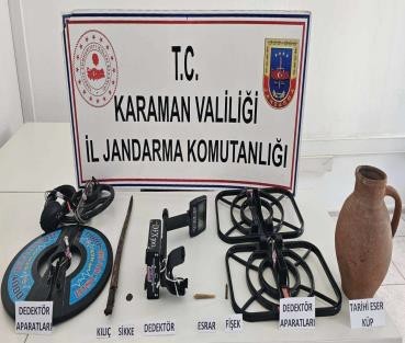 Denetimler esnasında ayrıca ; Kenevir Bitkisi, Kubar Esrar, (1) Adet Kılıç, (2) Adet Sikke, (3) Adet Küp, (1) Adet Av Tüfeği, (6) Adet Mühür, (1) Adet Yüzük, (2) Adet Bakır Tepsi, (1) Adet Bakır Bileklik, (55) Adet Tarihi Eser El Yazması Kağıt, (1) Adet Elektronik Dedektör ve Dedektöre Ait Aparatlar, (1) Adet 9.65 mm Tabanca Fişeği, (16) Adet Demir Kapı, (14) Adet Demir Mazgal ele geçirilmiştir.
