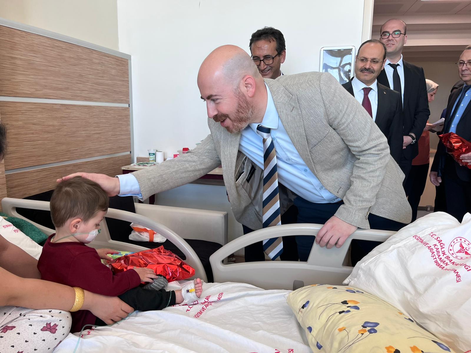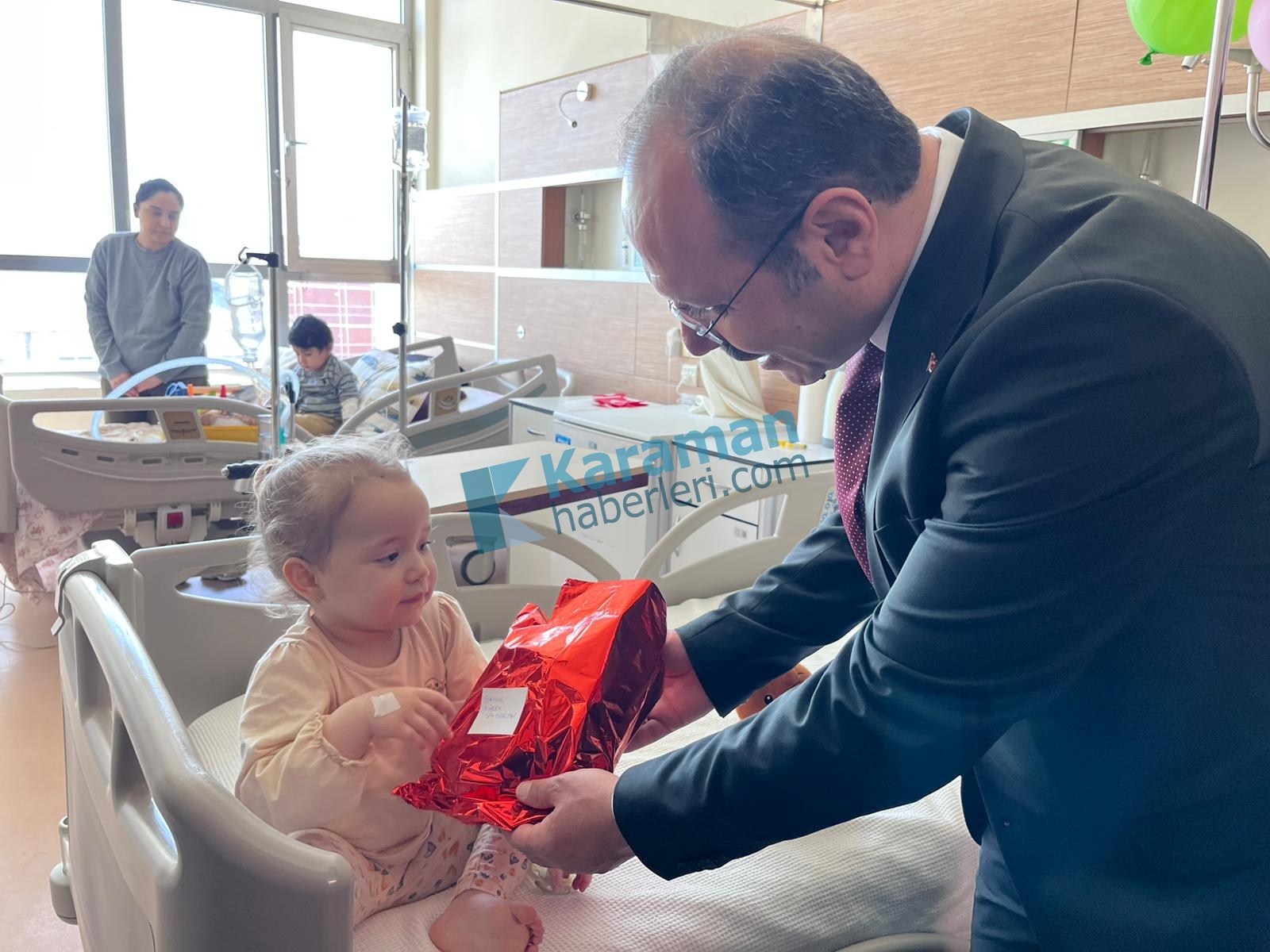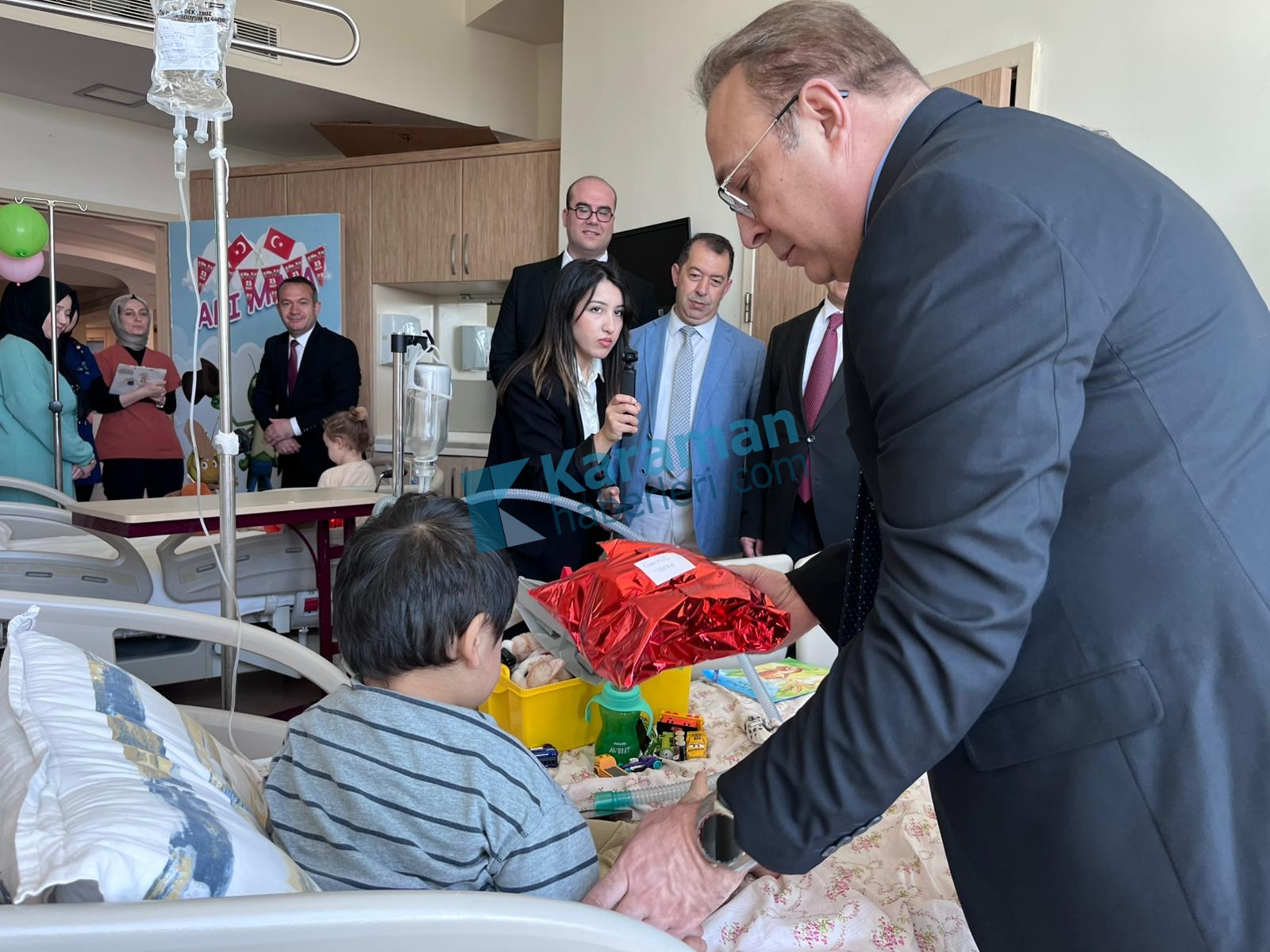 Karaman İl Milli Eğitim Müdürü Mehmet Çalışkan, Karaman İl Sağlık Müdürü Mehmet Serkan Yurdakul, Karaman Aile ve Sosyal Hizmetler İl Müdürü Nurettin Ulaş ile Karaman Eğitim ve Araştırma Hastanesi Başhekimi Şükrü Salih Toprak, çocuk servisindeki minikleri ziyaret etti.MİNİKLERE OYUNCAK HEDİYE EDİLDİBayramı hastanede geçirmek zorunda kalan çocuklarla yakından ilgilenen protokol üyeleri, miniklerin sağlık durumları hakkında ailelerinden bilgi aldı. Çocuklara çeşitli oyuncaklar hediye edilerek bayram coşkusu hastane ortamına taşındı.YALNIZ BIRAKMADILARZiyarette çocuklarla sohbet edilerek moral verildi. Miniklerin mutluluğu yüzlerine yansırken, aileler de yapılan ziyaretten memnuniyet duydu.ÇALIŞKAN’DAN BAYRAM MESAJIİl Milli Eğitim Müdürü Mehmet Çalışkan, 23 Nisan’ın tüm çocuklar için özel anlam taşıdığını belirterek, bu anlamlı günde hastanede tedavi gören çocukları yalnız bırakmak istemediklerini ifade etti.Çalışkan, tüm çocukların bayramını kutlayarak sağlık ve mutluluk temennisinde bulundu.Ziyaret, günün anısına çekilen hatıra fotoğrafıyla sona erdi.