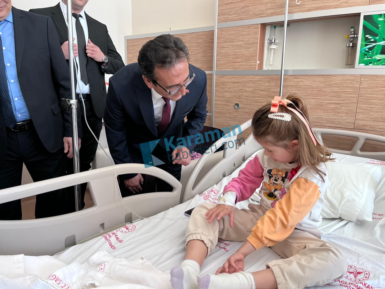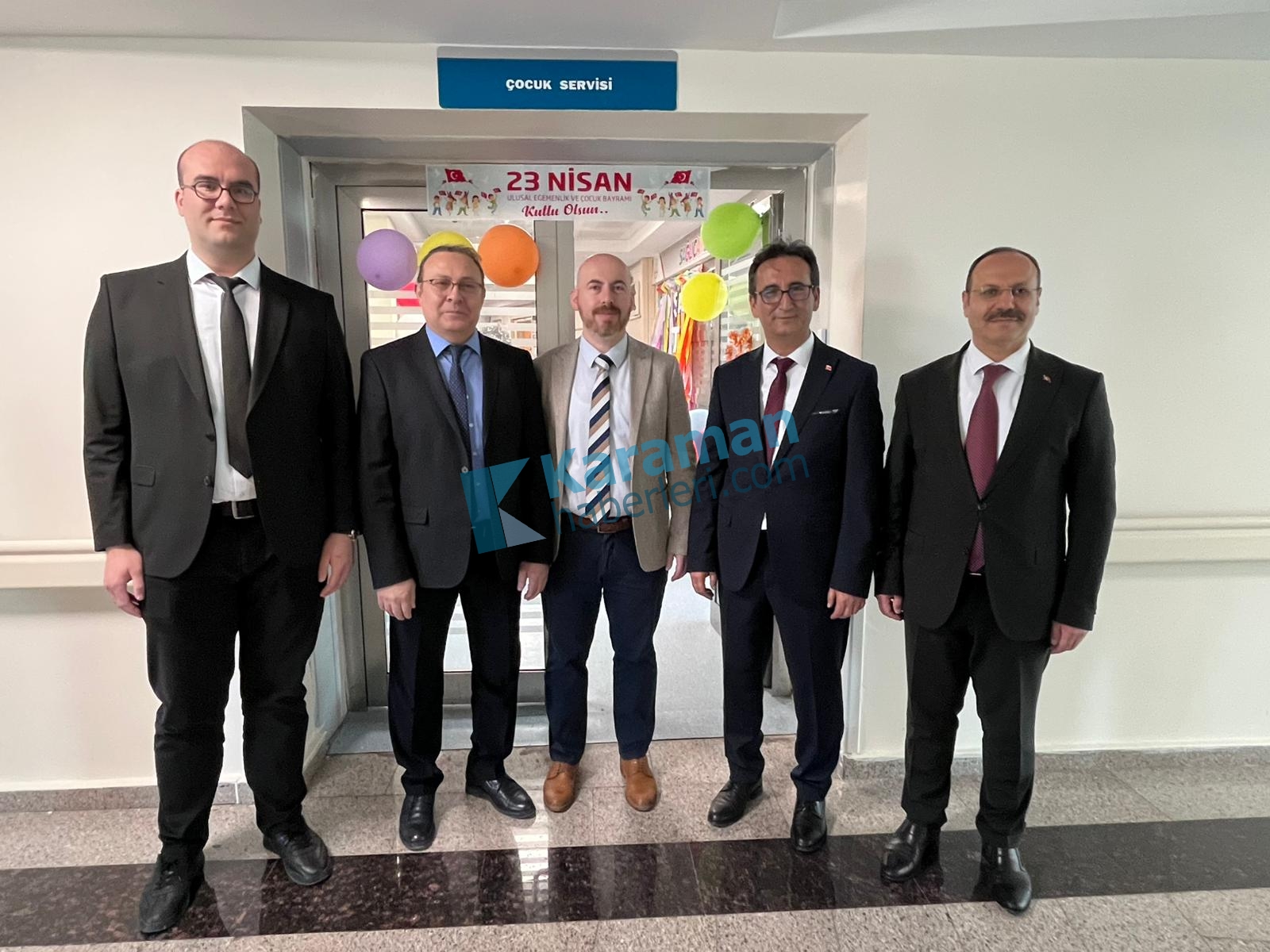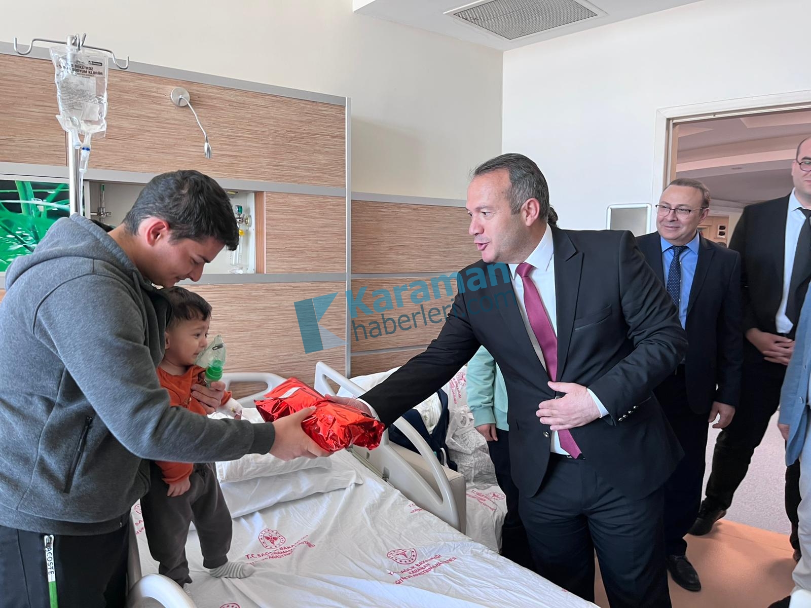 Karaman İl Milli Eğitim Müdürü Mehmet Çalışkan, Karaman İl Sağlık Müdürü Mehmet Serkan Yurdakul, Karaman Aile ve Sosyal Hizmetler İl Müdürü Nurettin Ulaş ile Karaman Eğitim ve Araştırma Hastanesi Başhekimi Şükrü Salih Toprak, çocuk servisindeki minikleri ziyaret etti.MİNİKLERE OYUNCAK HEDİYE EDİLDİBayramı hastanede geçirmek zorunda kalan çocuklarla yakından ilgilenen protokol üyeleri, miniklerin sağlık durumları hakkında ailelerinden bilgi aldı. Çocuklara çeşitli oyuncaklar hediye edilerek bayram coşkusu hastane ortamına taşındı.YALNIZ BIRAKMADILARZiyarette çocuklarla sohbet edilerek moral verildi. Miniklerin mutluluğu yüzlerine yansırken, aileler de yapılan ziyaretten memnuniyet duydu.ÇALIŞKAN’DAN BAYRAM MESAJIİl Milli Eğitim Müdürü Mehmet Çalışkan, 23 Nisan’ın tüm çocuklar için özel anlam taşıdığını belirterek, bu anlamlı günde hastanede tedavi gören çocukları yalnız bırakmak istemediklerini ifade etti.Çalışkan, tüm çocukların bayramını kutlayarak sağlık ve mutluluk temennisinde bulundu.Ziyaret, günün anısına çekilen hatıra fotoğrafıyla sona erdi.