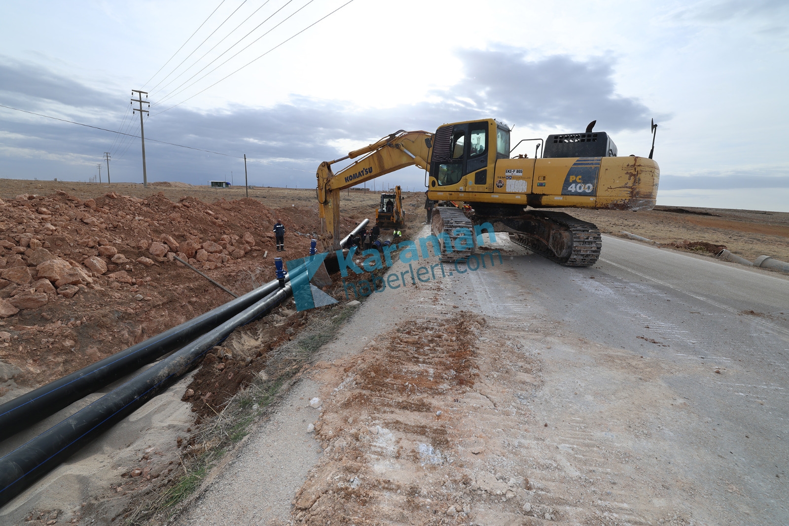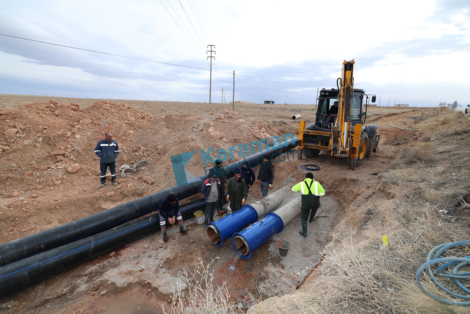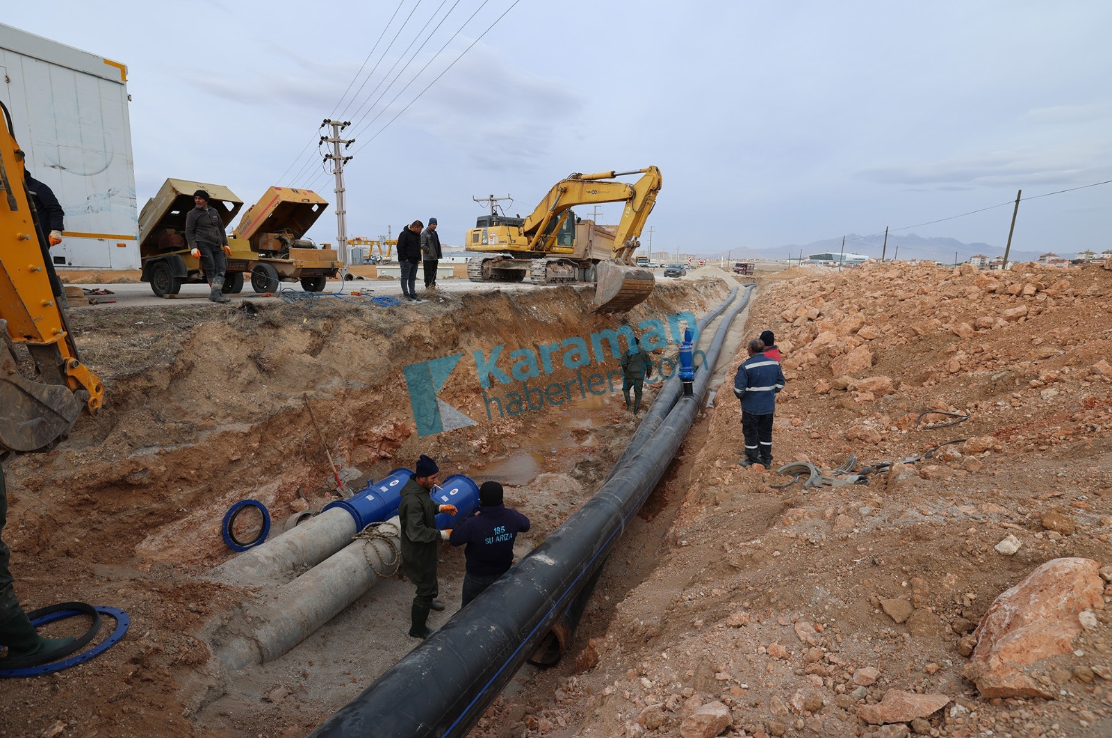 Karaman Belediyesi, çevre yolu yapım çalışmaları nedeniyle içme suyu hattında zorunlu olarak yer değişikliği yapıyor.