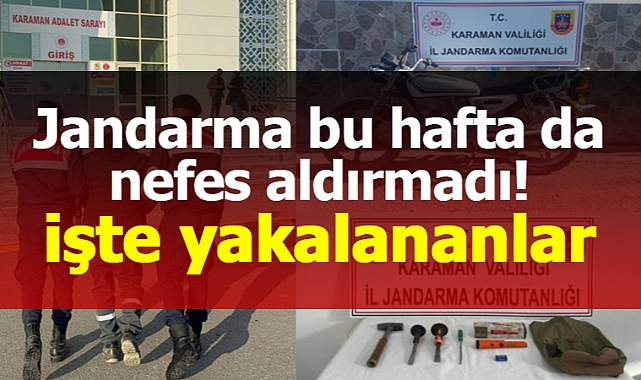 Karaman İl Jandarma Komutanlığı tarafından asayiş, kom ve trafik olayları başta olmak üzere, vatandaşların huzurunu bozacak her türlü suçun engellenmesi, işlenmiş suçların ortaya çıkarılması ve suça karışan şahısların yakalanması amacıyla 09 – 19 Kasım 2023 tarihleri arasında asayiş çalışmaları yürütüldü.Yapılan çalışmalar neticesinde;