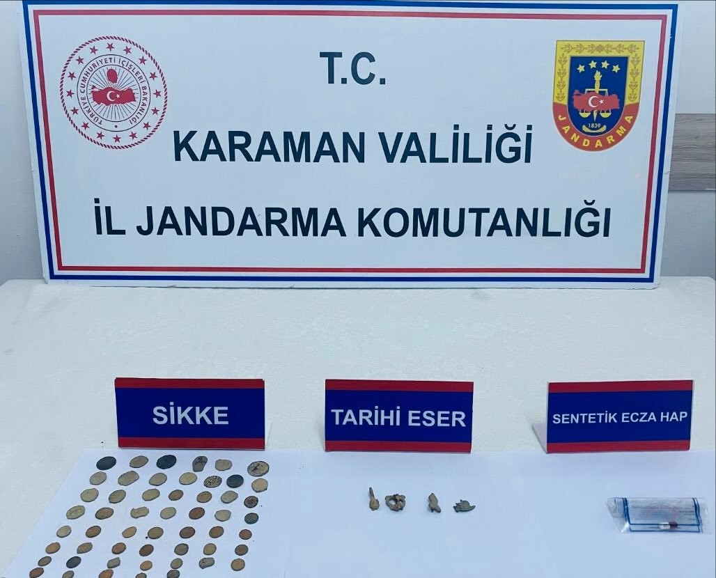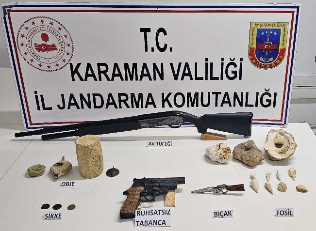 Karaman İl Jandarma Komutanlığı tarafından konuyla ilgili yapılan bilgilendirmede şu detaylar paylaşıldı:Karaman İl Jandarma Komutanlığınca asayiş, narkotik ve trafik olayları başta olmak üzere, vatandaşımızın huzurunu bozacak her türlü suçun engellenmesi, suça karışan şahısların yakalanması amacıyla 29 Kasım – 05 Aralık 2024 tarihleri arasında yapılan çalışmalarda;• (6.703) şahıs ve (3.220) araç sorgulanmış,• JANDARMA DEDEKTİFLERİ (JASATLAR) başta olmak üzere asayiş ekiplerince yapılan çalışmalar neticesinde; Bilişim Sistemleri Banka veya Kredi Kurumlarının Araç Olarak Kullanılması Suretiyle Dolandırıcılık, Basit Yaralama, Borçlunun Ödeme Şartının İhlali, Kullanmak İçin Uyuşturucu veya Uyarıcı Madde Madde Satın Almak, 2313 Sayılı Kanuna Aykırılık, Dolandırıcılık, Kamu Kurum ve Kuruluşlarını vb. Tüzel Kişiliklerin Araç Olarak Kullanılması Suretiyle Dolandırıcılık, Bina İçinde Muhafaza Altına Alınmış Olan Eşya Hakkında Hırsızlık, Nafaka Hükümlerine Uymama, Konut Dokunulmazlığına İhlali ve Tehdit suçlarından aranan (27) şahıs yakalanmış olup;• (4) şahıs tutuklanmış, • (7) araç sürücüsüne ehliyetsiz/yetersiz araç kullanmaktan,• (28) araç trafikten men edilmiş,Denetimler esnasında ayrıca; (1) adet ruhsatsız av tüfeği, (1) adet ruhsatsız tabanca, (5) adet Lyrıca, (2) adet Galara marka (uyuşturucu-uyarıcı) hap, (1) adet bıçak, (57) adet sikke, (55) adet tarihi eser obje ve (11) adet fosil ele geçirilmiştir.İlimizde huzur ve güven ortamının devamını sağlamaya yönelik denetim ve uygulamalara kararlı ve kesintisiz bir şekilde devam edilecektir."
