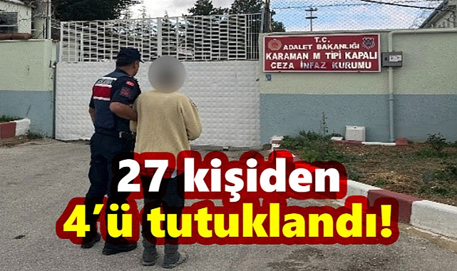 Karaman'da jandarmanın çalışmalarında yakalanan 27 kişiden dördü tutuklandı