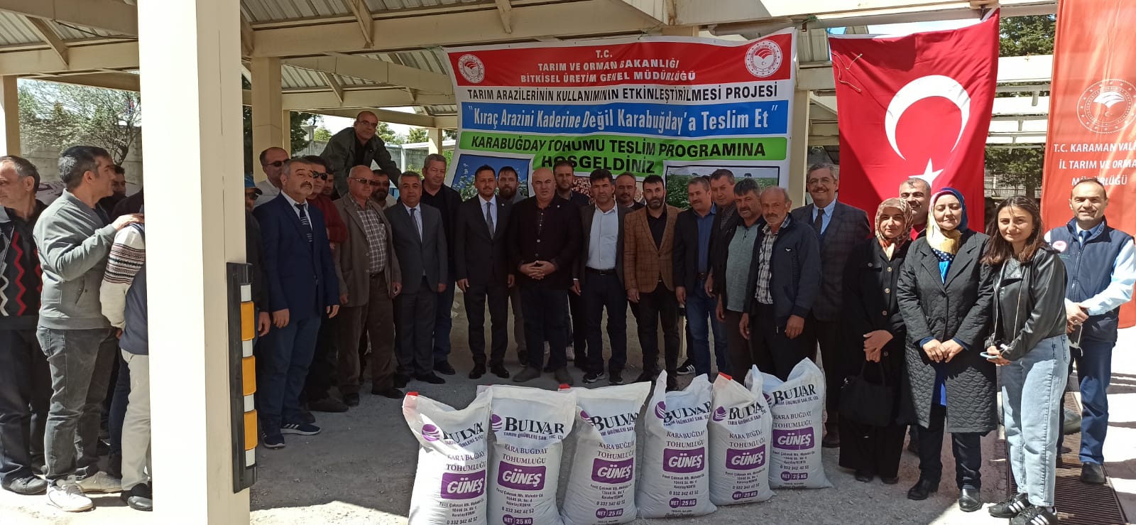 Karaman'da Bitkisel Üretim Genel Müdürlüğü tarafından finanse edilen Tarım Arazilerinin Kullanımın Etkinleştirilmesi (TAKEP) projeleri bünyesinde ilimizde yürütülen “Kıraç Arazini Kaderine Değil Karabuğdaya Teslim Et” projesi kapsamında karabuğday tohumları üreticilere teslim edildi. Bitkisel Üretim Genel Müdürlüğü tarafından finanse edilen Tarım Arazilerinin