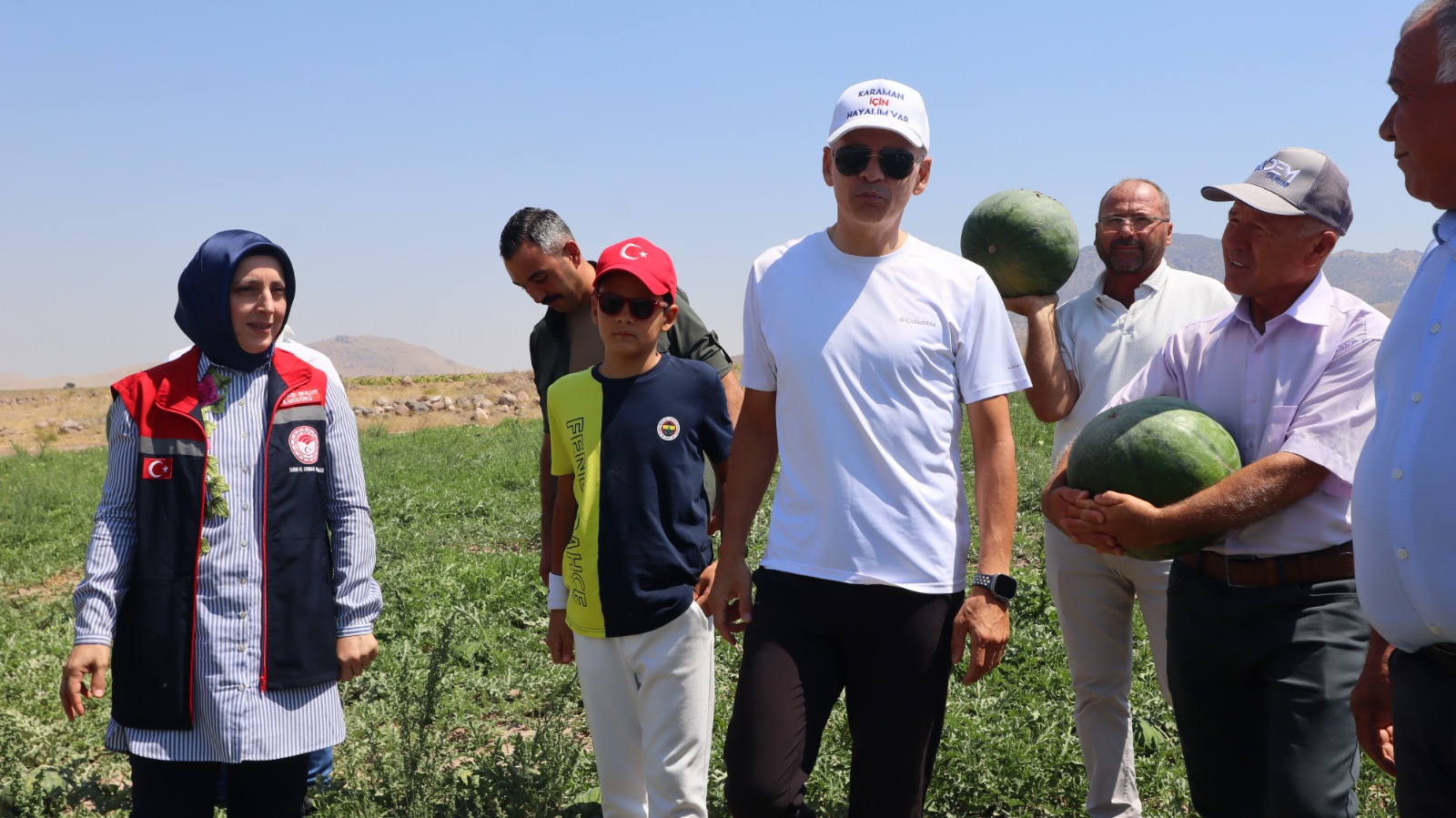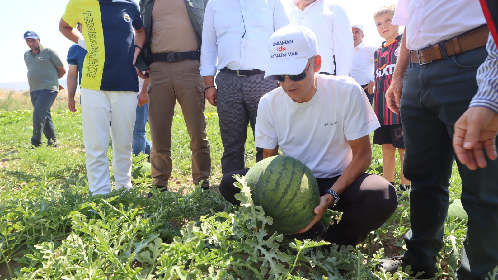 Ortaoba köyünün bereketli topraklarında ata tohumundan üretimi yapılan Ortaoba Karpuzu hasadı yapıldı.Karadağ’ın volkanik eteklerinde geleneksel ata tohumlarıyla yetiştirilen karpuz, deseni, kokusu, dayanıklılığı ve aromasının yanı sıra benzersiz tadı ile ön plana çıkıyor.Ata tohumu ile üretilen ve kumsal topraklardan aldığı minerallerle doğal ve farklı bir aroma kazanan Ortaoba Karpuzu'nun bölgenin tarımsal mirasının korunması, geliştirilmesi ve geleceğe aktarılması açısından büyük önem taşıyor.Yapılan Karpuz hasat şenliğine Karaman Valisi Sayın Mehmet Fatih Çiçekli, Karaman İl Jandarma Komutanı Osman Saygılı, İl Genel Meclisi Başkanı Tamer Yıldızbaş,İl Tarım ve Orman Müdürü Hatice Bulut,İl Özel İdaresi Genel Sekreteri Ali Yener Terlemez, AK Parti Merkez İlçe Başkanı Süleyman Kazanç,Ortaoba Köy Muhtarı Mehmet Kılınç ve Ortaoba köy halkı katıldı.