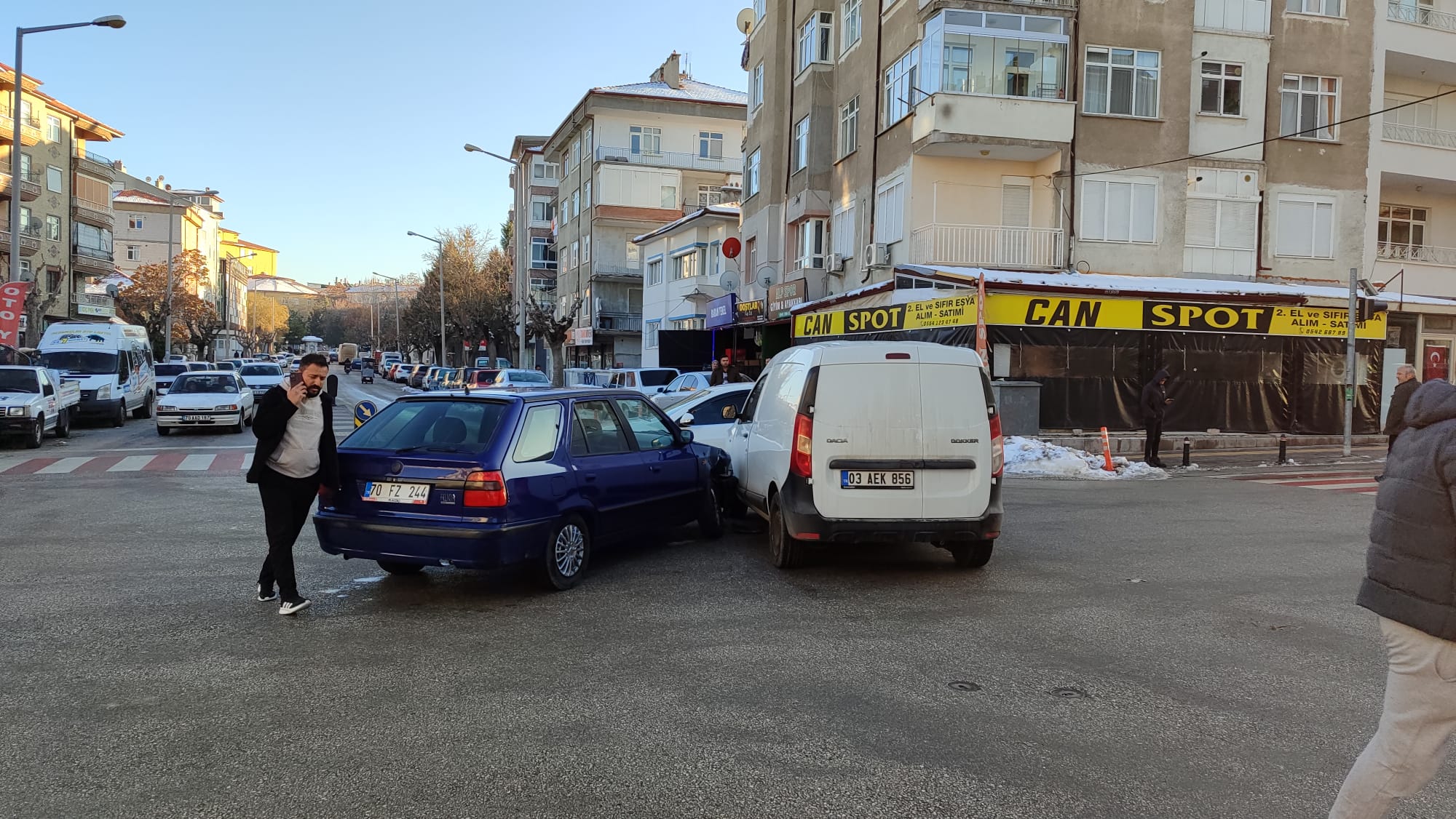 Edinilen bilgiye göre kaza, Yunus Emre Cami civarı Kemal Kaynaş Caddesi üzerinde meydana geldi. 4 yönden geçişli kavşak üzerinde 70 EZ 244 plakalı otomobil ile 03 AEK 856 plakalı otomobil kafa kafaya çarpıştı.Yol hakkı üstünlüğünü anlık olarak dikkatinden kaçıran sürücüler kazaya engel olamadı.Şans eseri kazada yaralanan olmadı. Kazada maddi hasar meydana geldi.
