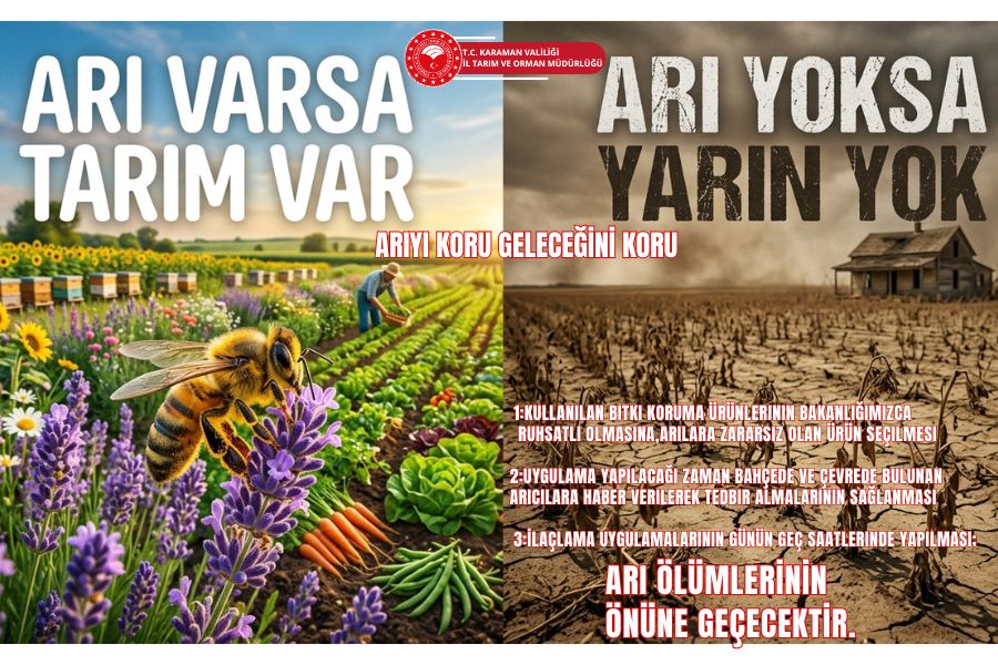Karaman İl Tarım ve Orman Müdürlüğü’nün paylaşımına göre, kentte ekonomik değeri yüksek birçok tarım ürününün meyve bağlamasında ve tohum tutmasında en önemli etken arılar olarak öne çıkıyor. Özellikle meyve bahçeleri, ayçiçeği ve birçok tarla ürününde verimin doğrudan arıların tozlaşma faaliyetlerine bağlı olduğu vurgulandı.“ARILAR TARIMIN TEMEL GÜCÜ”İl Tarım ve Orman Müdürü Hatice Bulut, ilkbahar mevsimiyle birlikte tarımsal faaliyetlerin yoğunlaştığını belirterek meyve bahçelerinde bakım, hububat alanlarında gübreleme ve ilaçlama, ayçiçeği ile mısır ekim hazırlıklarının başladığını ifade etti.Bu yoğun dönemde kullanılacak bitki koruma ürünlerine dikkat edilmesi gerektiğini belirten Bulut, ruhsatlı ürünlerin tercih edilmesini ve arılara zararsız ilaçların seçilmesini istedi.ARICILARA HABER VERİNİlaçlama yapılmadan önce bahçe içinde veya çevrede bulunan arıcılara bilgi verilmesi gerektiğini vurgulayan Bulut, böylece gerekli tedbirlerin alınabileceğini söyledi.SAAT UYARISI GELDİİlaçlama uygulamalarının arıların uçuş yapmadığı erken sabah ya da geç akşam saatlerinde yapılmasının büyük önem taşıdığına dikkat çeken Bulut, bu yöntemin arı ölümlerini önleyeceğini kaydetti.Karaman’da üreticilere yapılan uyarının, hem bal üretimi hem de tarımsal verimin korunması açısından kritik önem taşıdığı belirtildi.