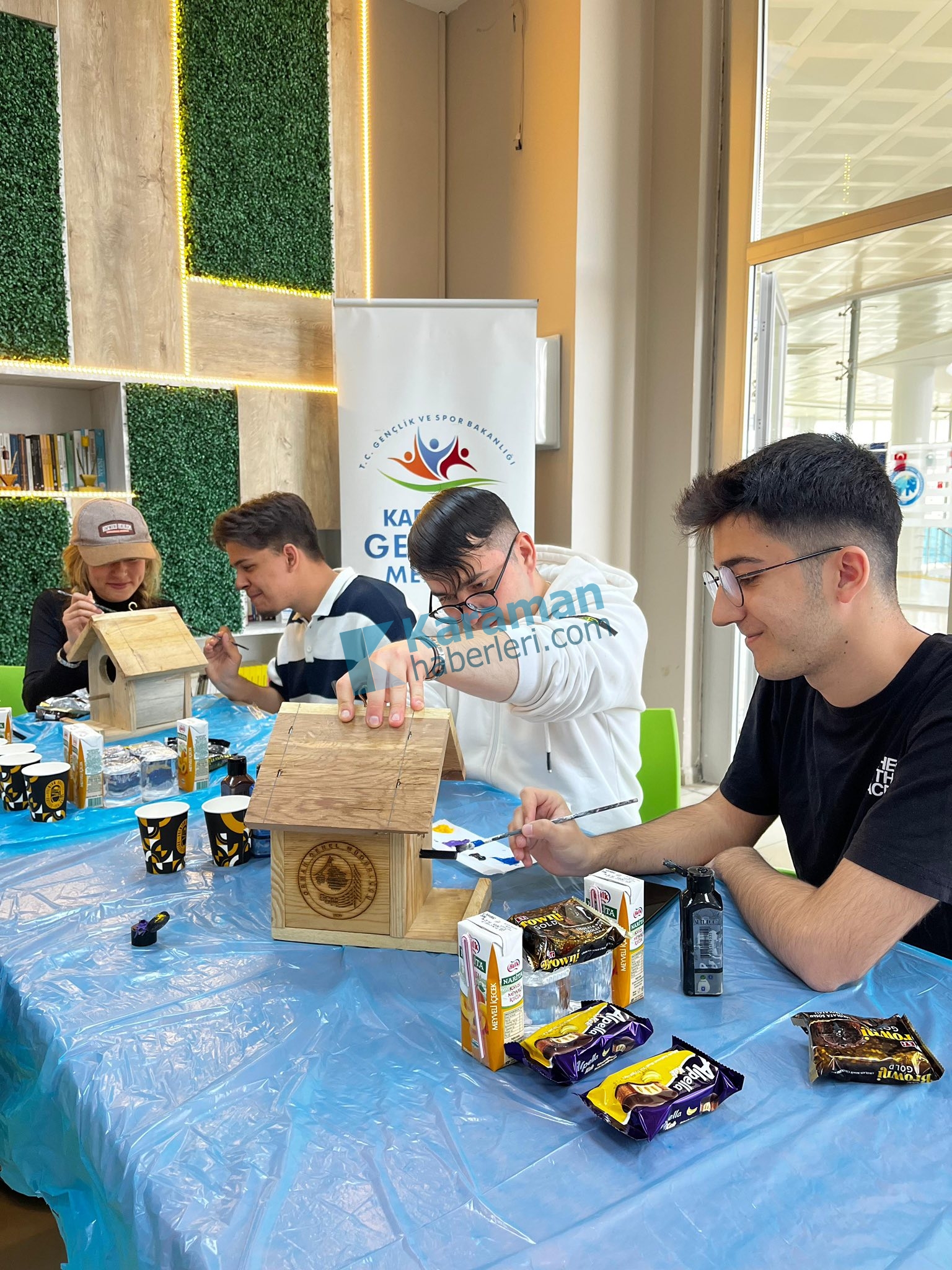 Etkinlikte gençler hem el becerilerini ortaya koydu hem de çevre duyarlılığına dikkat çekti. Katılımcılar, kuş evlerini farklı renk ve desenlerle boyayarak doğaya estetik dokunuş yaptı. Hazırlanan yuvaların daha sonra uygun alanlara yerleştirilerek kuşların kullanımına sunulacağı öğrenildi.HEM ÜRETİM HEM PAYLAŞIMEtkinlik boyunca gençler, birlikte üretmenin ve paylaşmanın mutluluğunu yaşadı. Organizasyonun, sosyal sorumluluk bilinci ile çevre sevgisini bir araya getirdiği vurgulandı.DOĞAYA KATKI MESAJIKaraman Gençlik Merkezi yetkilileri, gençleri doğa dostu projelerde buluşturmaya devam edeceklerini belirterek çevreye duyarlı çalışmaların süreceğini ifade etti.