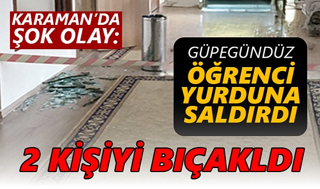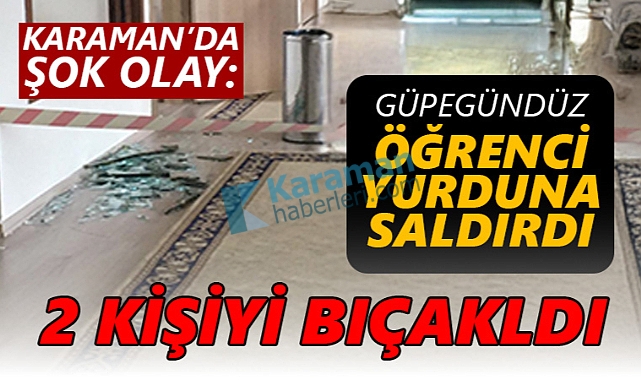 Olay sabah saatlerinde Karamanoğlu Mehmetbey Mahallesi 930. Sokakta meydana geldi.Edinilen bilgilere göre bir öğrenci yurduna M.A. isimli şahıs 2 kişiye saldırdı. Psikolojik problemleri olduğu öğrenilen şahıs, yurda ayakkabıyla girdiği için tartışma çıktı. Halı serilmiş bölümde ayakkabısı ile gezdiği için uyarılan M.A. isimli şahıs H.A'yı koltuk altından ve M.K. isimli şahsı da kolundan bıçaklayarak olay yerinden kaçtı.Yaralanan şahısların birisinin yurtta personel görevlisi diğerinin ise hoca olduğu bilgisi edinildi.Yaralılar Karaman Eğitim Araştırma Hastanesine kaldırıldı.Polis ekipleri olay yerine gelerek soruşturma başlattı. Olay yerinden kaçan M.A. isimli şahıs polis ekipleri tarafından yakalanarak gözltına alındı.