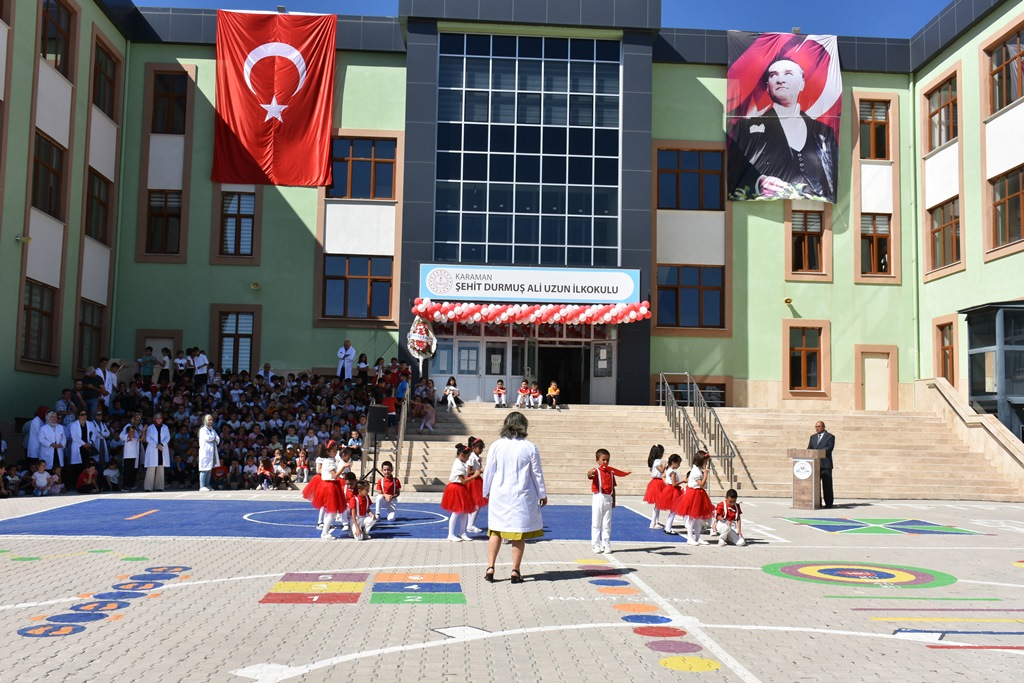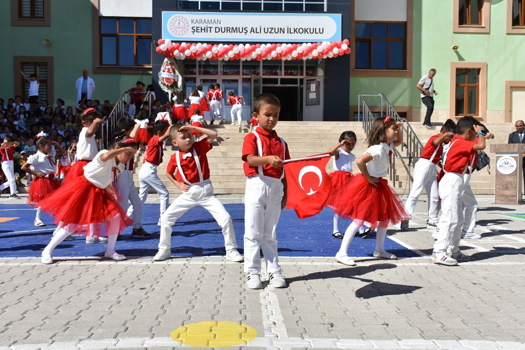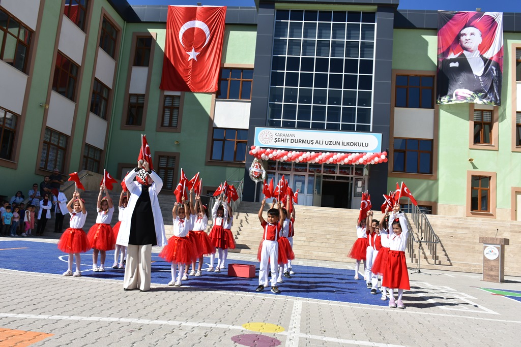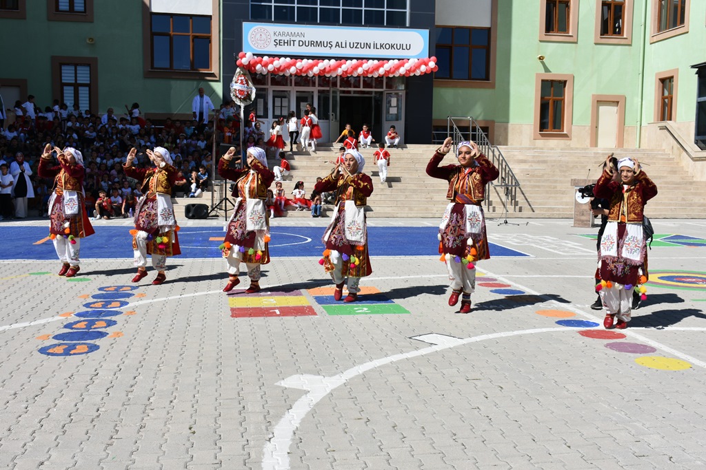 İl Millî Eğitim Müdürü Mehmet Çalışkan’ın konuşmasının ardından öğrencilerin okuduğu şiirler ve gösteri performanslar ile izleyenlerin kalplerine dokundu. İbrahim Bey Ortaokulu tarafından oluşturulan halk oyunu ekibinin gösterisi ilgiyle izlenirken Yunus Emre Ortaokulu 8’inci sınıf öğrencisi Emin Bekir Başaran’ın maket uçak gösterisi keyifli anlar yaşattı. Programda 4. sınıf öğrencilerinin 1. sınıfa yeni başlayan arkadaşlarına sunduğu hoş geldin çiçeği sunması dostluk ve kardeşlik duygularını pekiştirirken, öğrenciler arasında geleceğin umut dolu bağları kuruldu.