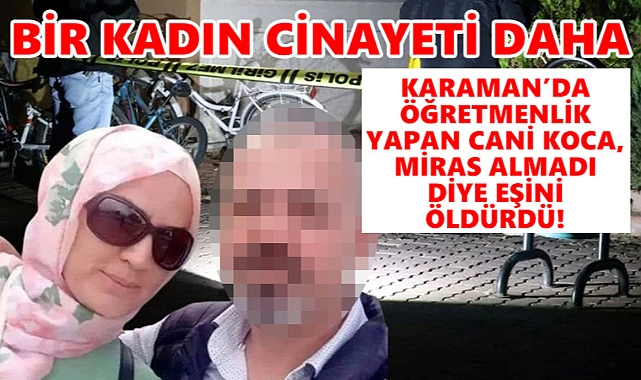 Karaman'da öğretmenlik yaptığı iddia edilen cani koca babasının mirasını almadı diye eşini 17 kere bıçaklayarak öldürdü.Konya'da Öğretmen Ebru K., Boşanma Aşamasındaki Eşi Tarafından Öldürüldü...Konya'nın Meram ilçesinde yaşanan trajik olayda, özel bir eğitim kurumunda öğretmenlik yapan Ebru K., dersler geçirdiği bir sitenin boşanma sırasında olduğu eşi Abdullah K. tarafından bıçaklanarak hayatını kaybetti. Abdullah K., eşinin miras anlaşması nedeniyle ortaya çıkan tartışmanın ardından öldürdüğünü ifade etti. Karaman'da öğretmenlik yaptığı öğrenilen zanlı Abdullah K., olayın ardından tutuklanarak cezaevine gönderildi.