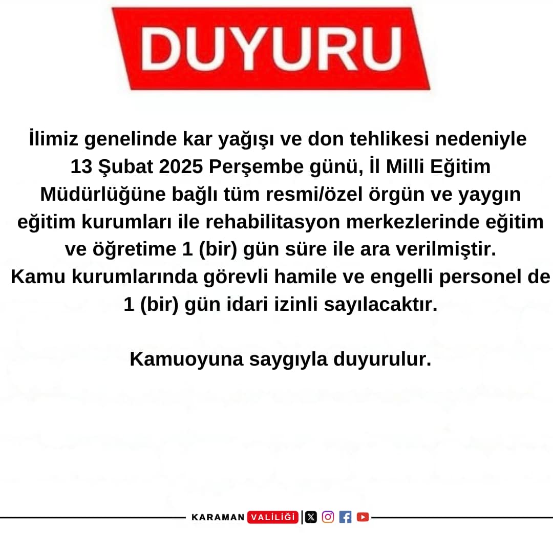 Karaman'da okullar tatil mi? Resmi açıklama geldi!