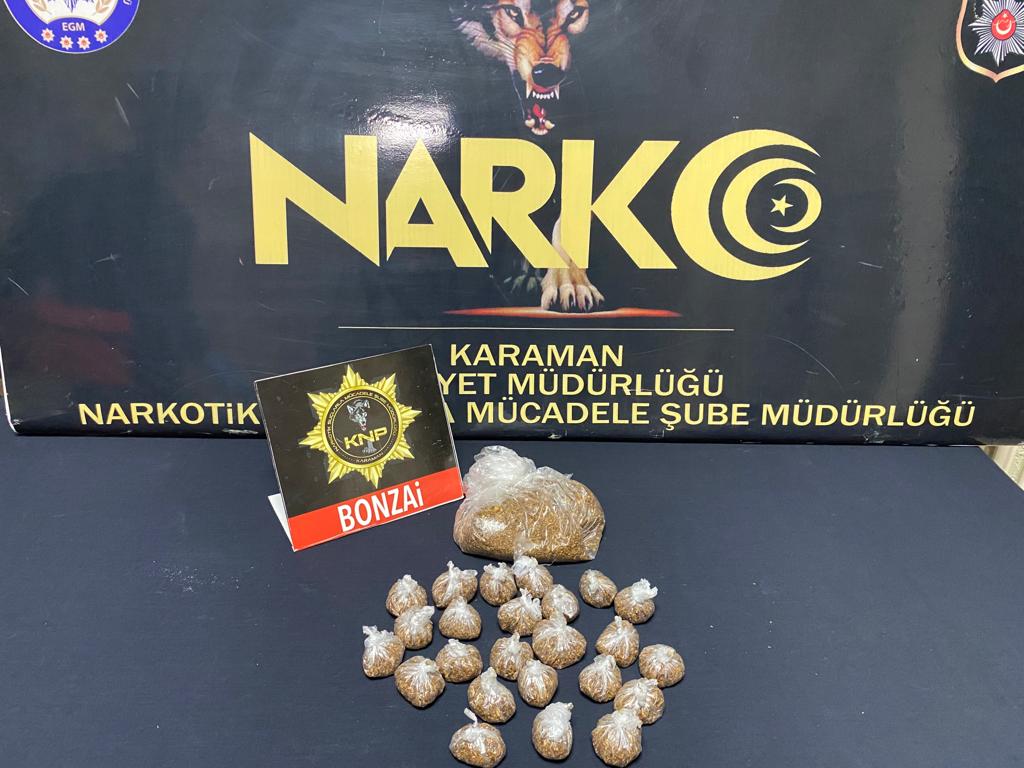 Karaman'da düzenlenen uyuşturucu operasyonunda satışa hazır şekilde paketlere ayrılmış bonzai ile yakalanan zanlı tutuklandı.