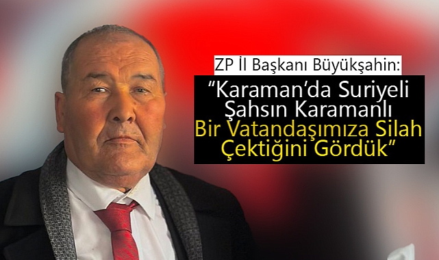 Karaman'da bir Suriyeli şahsın Karamanlı İsa O. isimli vatandaşa silah çektiği yönündeki iddialarda olay büyüdü.Karaman'da dün yerel basında çıkan haber sonrası Zafer Partisi Karaman İl Başkanı Keramettin Büyükşahin açıklamalarda bulundu.Zafer Partisi Karaman İl Başkanı Keramettin Büyükşahin, geçtiğimiz günlerde yerel basında yer alan habere ilişkin açıklamalarda bulundu.Karaman İl Başkanı Büyükşahin;“Dün Karaman yerel basınında çok utandığımız bir konu ile karşılaştık. Yerel basında izlediğimiz bir video sonrası Zafer Partisi Karaman İl Başkanı olarak açıklama yapma gereği duydum. İzlediğimiz videoda bir Suriyeli mülteci olduğunu öğrendiğimiz şahıs, Karamanlı bir vatandaşımıza Fisandun Barajında silah çekiyor. Videoda yanında 2 şahsın daha olduğunu gördük.Suriyeli şahıs vatandaşımıza kendisini Karaman Tarım İl Müdürlüğünde personel olarak tanıttığını duyduk. Daha sonra ise konunun Karaman İl Tarım Müdürlüğü ile alakası olmadığını Suriyeli şahsın balıkçıda çalıştığını ve İsa O. İsimli şahsa yalan söylediğini öğrendik. Daha sonra ise diğer 2 şahsın Karaman İl Özel İdaresinde personel olduğunu ve yanında bir Suriyeli şahıs ile kanoya binerek Fisandun Barajında denetim yaptığını öğrendik.Anlamadığımız nokta Fisandun Barajı ve İl Özel İdaresinin ne gibi bir bağlantısı olduğu, ikinci bir kavrayamadığımız nokta ise bir Suriyeli şahsın Karamanlı İsa O.’ya denetim yapmış ve hesap sorar gibi sorular sorması oldu.Suriyeli şahsın daha sonra İsa O.’ya silah çektiğini videodan izledik. Yine videodan izlediğimiz kadarı ile Suriyeli vatandaşın İsa O.’ya balık rüşvet ettiğini ve konunun kapanmasını istediğini duyduk.Bu silahın Suriyeli şahsa nasıl temin edildiği ve Suriyeli şahsın bir Türk vatandaşına denetim yapmasını kimin söylediğini merak ediyoruz.Yetkililerden olayın araştırılmasını istiyoruz.”