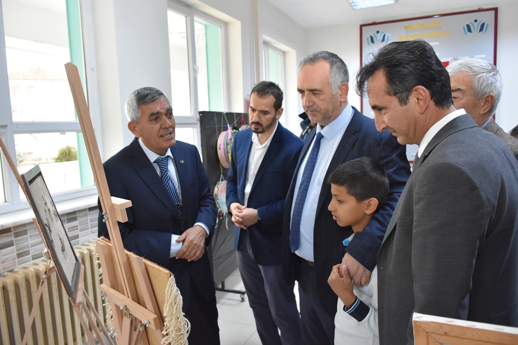 İbrahim Bey İlk ve Ortaokulunda düzenlenen resim sergisinin açılış törenine, Karaman Belediye Başkan Yardımcısı Eyüp Hüsamettin Arslan, İl Millî Eğitim Müdürü Mehmet Çalışkan, MHP İl Başkanı Mustafa Gözel, Kent Konseyi Başkanı Hüseyin Gerçek, Millî Eğitim Şube Müdürü Şahin Yeter, davetliler ve öğrenciler katıldı.Sergi öncesinde davetlilere bilgi veren Araştırmacı Yazar Osman Ülkümen, serginin amacının Türk kültürünün devamını sağlamak olduğunu söyledi. Osman Ülkümen, “Burada görmüş olduğumuz resimlerin tamamı Karaman ve çevresindeki kayalarda, mağaralarda bulmuş olduğumuz resimler. Bunun içerisinde belki de 15 bin yıllık mağara resimleri de var, eski çağlara götüren kaya resimleri de var. Ama ilginç olan şu örneğin bir bronz devrinde yapılan resimlerde Kırgızistan’daki güne başlı adamla Karaman kayalarında aynısının olması. Ama 4 bin, 5 bin, 6 bin yıllık. Kesinlikle Anadolu’da varız 1071 bize dağıtılan bir tarih çünkü biz eğer 1071’de geldik dersek işgalci konumuna düşüyoruz onun için biz daha önceden buradaydık, yıllardır vardık” dedi.Osman Ülkümen’in konuşmasının ardından Belediye Başkan Yardımcısı Eyüp Hüsamettin Arslan ile İl Millî Eğitim Müdürü Mehmet Çalışkan, öğrencilerle birlikte açılış kurdelesini kesti. Belediye Başkan Yardımcısı Eyüp Hüsamettin Arslan, İl Millî Eğitim Müdürü Mehmet Çalışkan ve beraberindekiler resim sergisini gezerek öğretmen ve öğrencilerden eserler hakkında bilgi aldı.