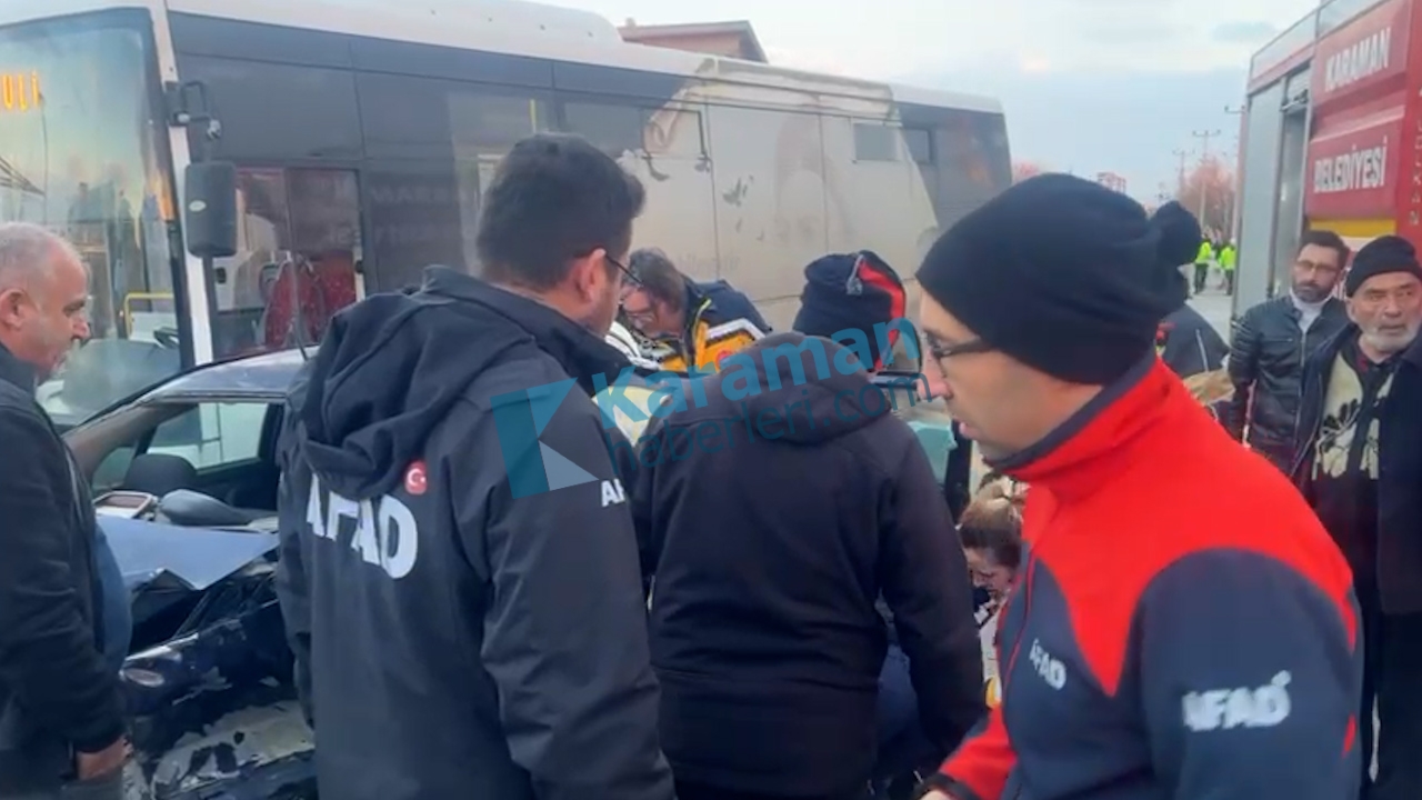 Edinilen bilgilere göre; bir otomobil, kamyonet ve belediye otobüsünün karıştığı kazada, kamyonetle çarpışan otomobil savrularak belediye otobüsüne çarptı. Çarpışmanın etkisiyle araçlarda maddi hasar oluşurken, otomobilde bulunan 2 yolcu araç içinde sıkıştı.