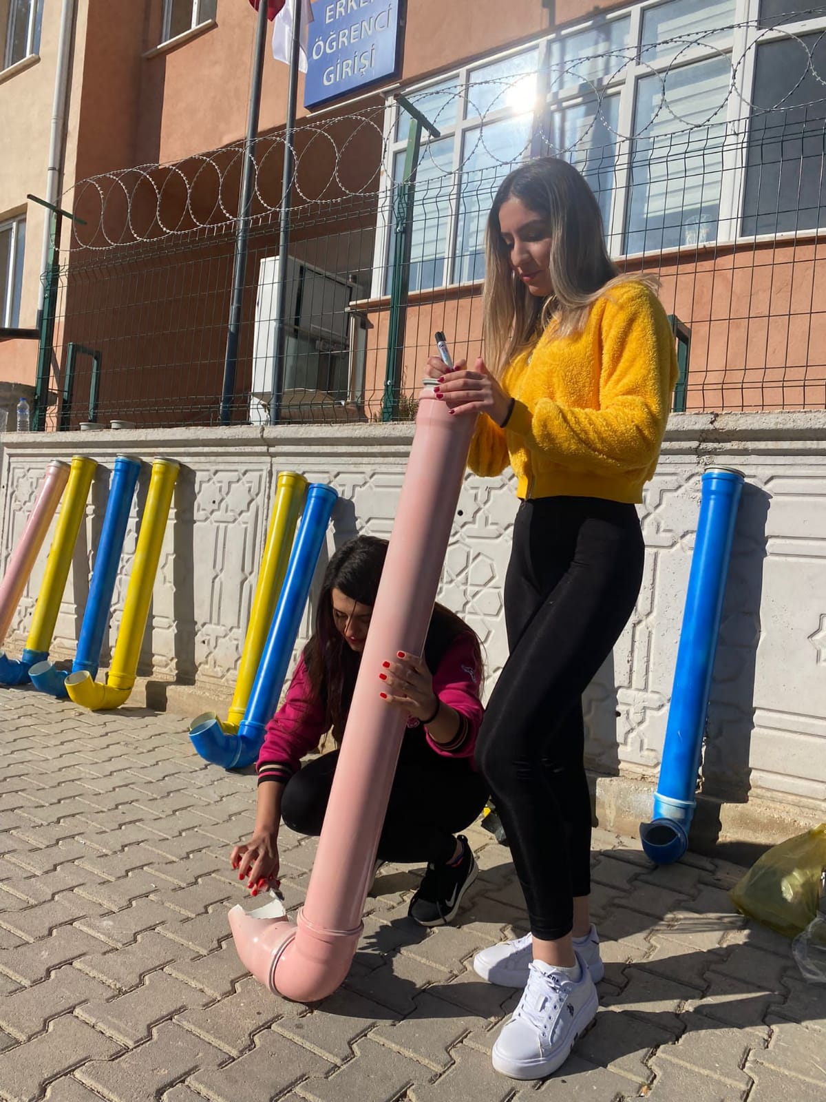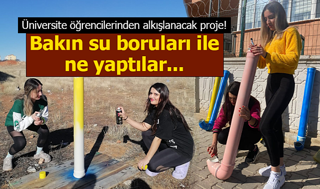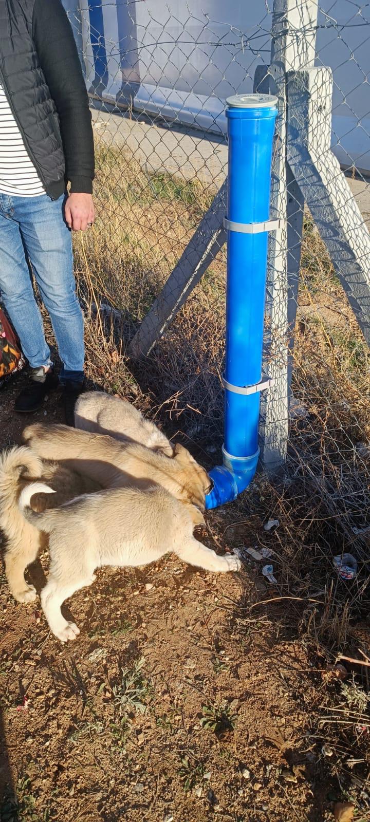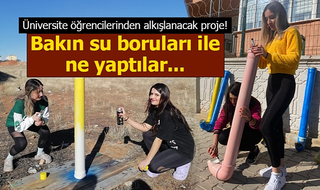 Karaman'da üniversite öğrencileri sokak hayvanları için su borusundan mama kabı yaptı