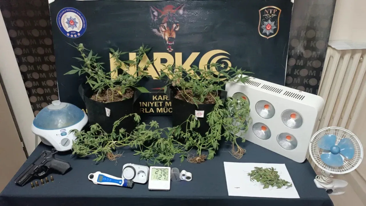 Karaman İl emniyet müdürlüğü tarafından 29 eylül 2024 tarihinde uyuşturucu operasyonu gerçekleştirildi.Karaman İl Emniyet Müdürlüğü tarafından yapılan açıklamalar şu şekilde:Karaman İl Emniyet Müdürlüğü, Karaman Cumhuriyet Başsavcılığı'nın koordinesiyle 29 Eylül 2024 tarihinde önemli bir uyuşturucu operasyonu gerçekleştirdi. Bu operasyonda Y.A. isimli şahıs, uyuşturucu madde kullanımı ve ticareti suçlamasıyla yakalanarak gözaltına alındı.Y.A.'nın ikametinde yapılan arama, oldukça ilginç bulgulara yol açtı. Evinde bulunan odunluğun, kenevir yetiştirmek için özel olarak düzenlendiği tespit edildi. Bu alanda gerçekleştirilen incelemelerde, birçok uyuşturucu madde üretimi ve kullanımına dair materyaller ele geçirildi.Ele geçirilen materyaller arasında, 6 kök kenevir bitkisi, bir adet tabanca ve bu tabancaya ait bir şarjör, 5 adet 9 x 19 mm tabanca mermisi, 5 adet kenevir tohumu ile 4,17 gram kurutulmuş kenevir yaprağı yer aldı. Ayrıca, kenevir yetiştirmek için gerekli iklimlendirme ekipmanlarının da bulunduğu belirtildi.Bu bulgular doğrultusunda, Y.A. hakkında Türk Ceza Kanunu ve Uyuşturucu Maddelerin Murakabesi Hakkında Kanun kapsamında adli tahkikat başlatıldı. Emniyet yetkilileri, operasyonda titiz bir çalışma yürütüldüğünü ve yasal sürecin devam ettiğini vurguladı.Karaman İl Emniyet Müdürlüğü, vatandaşların güvenliği ve huzuru için 24 saat esasına dayalı olarak çalışmalarına devam edeceğini açıkladı. Uyuşturucu ile mücadelenin kararlılıkla sürdürüleceği ifade edildi.