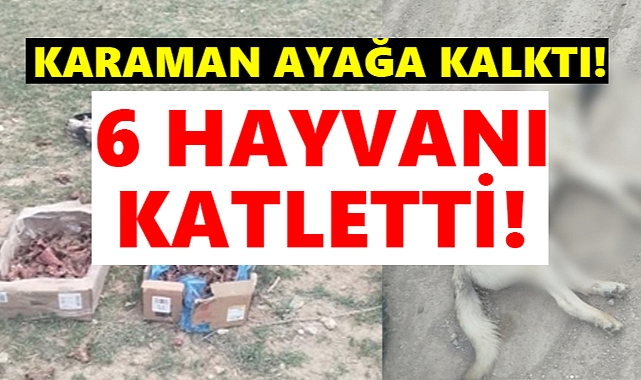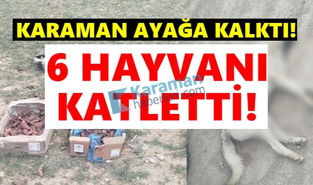 Karaman'da sokak hayvanlarının canını hiçe sayarak zehirleyen şahısların kimliği belirlenemedi.Olay Karaman'ın TOKİ bölgesinde gerçekleşti. Karaman Güncel'den edinilen bilgilere göre insan demeye utandığımız şahıslar 4 sokak köpeği 2'de kartal'ı zehirleyerek öldürdü.Gelen bilgiler doğrultusunda TOKİ bölgesinde kimlikleri belli olmayan şahıs veya şahıslar, sokakta aç aç gezen sokak hayvanlarını öldürmek amacıyla zehirli tavukları sokağa koydu. Karnını doyurmak için tavuklardan yiyen 4 sokak köpeği ve 2 yaban kartalını canından etti.TOKİ bölgesinde yaşanan bu vahşette hiçbir yetkili ses çıkarmazken, hayvanları kasten öldürmek, işkence etmek ve kötü muamalede bulunmanın suç olduğu da öğrenildi.Sessizce yaşamını sürdüren sokak hayvanları, şehirde katliam yapan bu canilerin ise kimlikleri belirlenip acilen ceza alması da Karaman kamuoyu tarafından talep ediliyor.