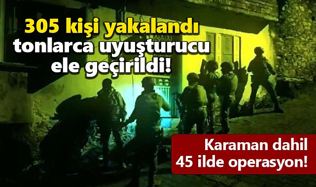 Karaman dahil 45 ilde gerçekleştirilen “Narkogüç-43” operasyonlarında 305 zehir taciri ve sokak satıcısı yakalanırken, tonlarca uyuşturucu madde ele geçirildi.