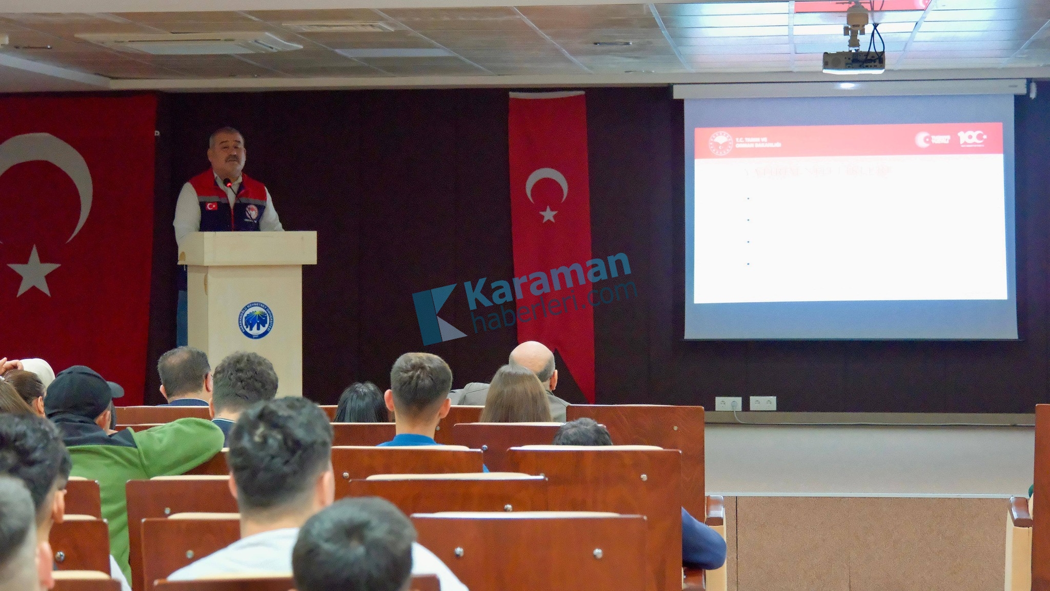 Karaman İl Tarım ve Orman Müdürlüğü’nün paylaşımına göre, Bakanlık Eğitim ve Yayım Daire Başkanlığı himayesinde, Karamanoğlu Mehmetbey Üniversitesi Yeşil Yakalılar Öğrenci Topluluğu tarafından organize edilen eğitim programı üniversite toplantı salonunda gerçekleştirildi.Programda Karamanoğlu Mehmetbey Üniversitesi Hassas Tarım Uygulamaları Bölümü öğrencileriyle bir araya gelindi.ÜÇ BAŞLIKTA EĞİTİM VERİLDİBitkisel Üretim Şube Müdürü Ömer Koka tarafından B-Reçete sistemi hakkında bilgi verildi.Kırsal Kalkınma ve Örgütlenme Şube Müdürü Raşit Balta ise Kırsal Kalkınma Yatırımlarının Desteklenmesi Projesi kapsamında verilen hibeler, başvuru süreçleri ve yatırım destekleri hakkında sunum yaptı.Veteriner Hekim Kemal Gümüştop da hayvancılık projeleri ile destekleme programlarını anlattı.GENÇLER SEKTÖRLE BULUŞTUPrograma Karaman İl Tarım ve Orman Müdürü Hatice Bulut, Karamanoğlu Mehmetbey Üniversitesi Rektör Yardımcısı Nevzat Aydın, öğretim görevlileri ve öğrenciler katıldı.AMAÇ NİTELİKLİ TARIM NESLİProgramda öğrencilerin mezuniyet sonrası tarım sektörüne daha donanımlı hazırlanması, devlet desteklerini tanıması ve modern üretim modelleri hakkında bilgi sahibi olması hedeflendi.