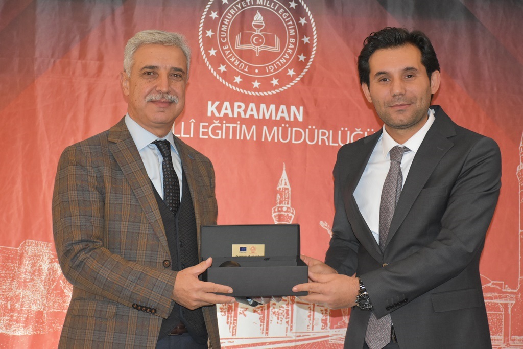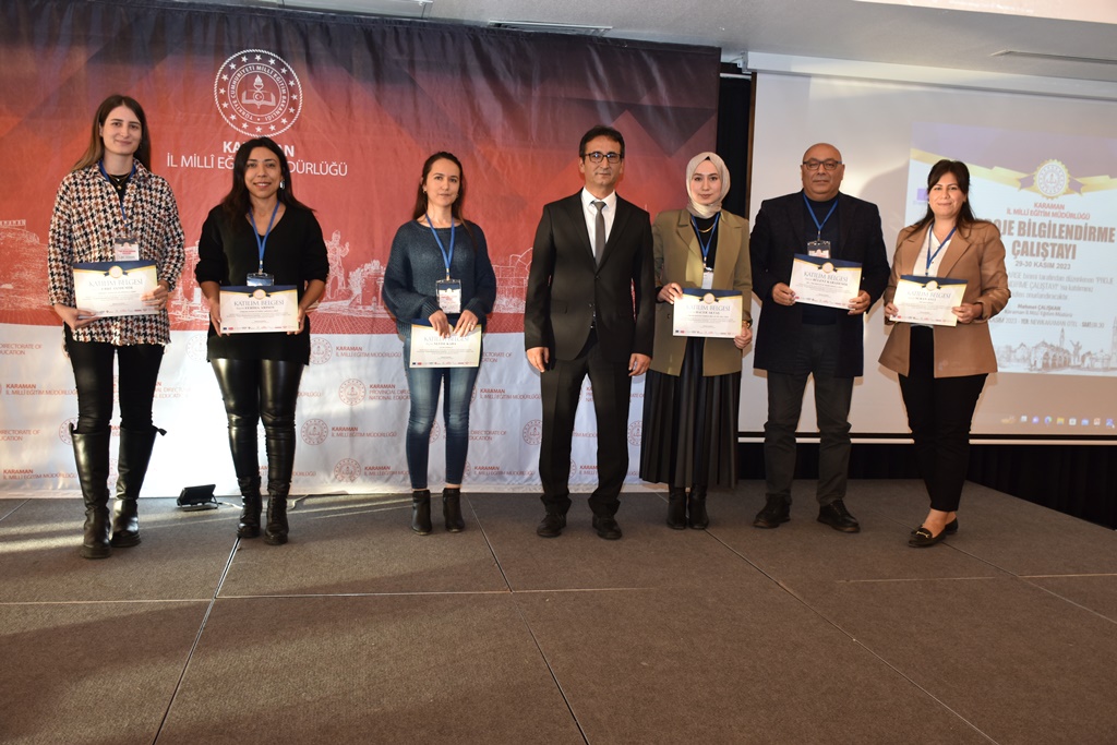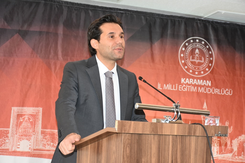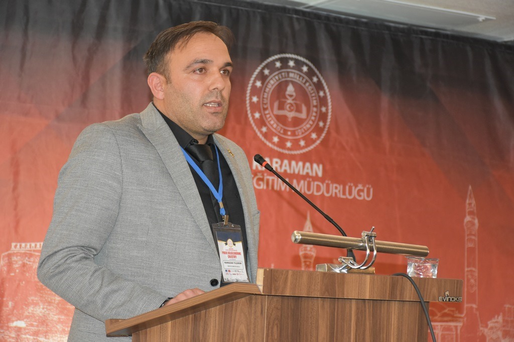 New Karaman Otel’de 29-30 Kasım 2023 tarihinde gerçekleştirilen Proje Bilgilendirme Çalıştay’ı AR-GE çalışmaları ve ‘Projelerle Karaman’ tanıtım videosunun gösterimi ile başladı. Çalıştayın açış konuşmasını İl Millî Eğitim Müdürü Mehmet Çalışkan yaptı.Proje Bilgilendirme Çalıştay’ının Karaman eğitim camiasına hayırlı olması dileğiyle konuşmasına başlayan İl Müdürü Mehmet Çalışkan, çalıştayın öğretmenlere meslekî anlamda önemli katkılar saylayacağını ifade etti. Çalışkan, “Geniş bir kalıtımın sağlanması ve gönüllü olarak bu çalıştaya katılmanız bizleri mutlu etti. Bu çalışmanın yansımalarını sizler meslekî anlamda yaşarken alanda yani sınıflarda sizlerin aracılığıyla öğrencilerimize de önemli katkılar saylayacağını düşünüyorum. İki gün sürecek çalıştayımızın düzenlenmesinde emeği geçen başta Müdür Yardımcımız İsmail Kılınç olmak üzere AR-GE birimindeki ekip arkadaşlarımıza ve katılımızdan dolayı sizlere teşekkür ediyorum.” dedi.İl Millî Eğitim Müdürü Mehmet Çalışkan’ın konuşmasının ardından Necmettin Erbakan Üniversitesi Ahmet Keleşoğlu Eğitim Fakültesi Eğitim Bilimleri Bölümü Rehberlik ve Psikolojik Danışmanlık Anabilim Dalı Öğretim Üyesi Prof. Dr. Hasan Yılmaz, “Günümüzün Değişen Koşullarında Öğretmenlik Rollerimize Eleştirel Bir Bakış" adlı konuşmayı yaptı.