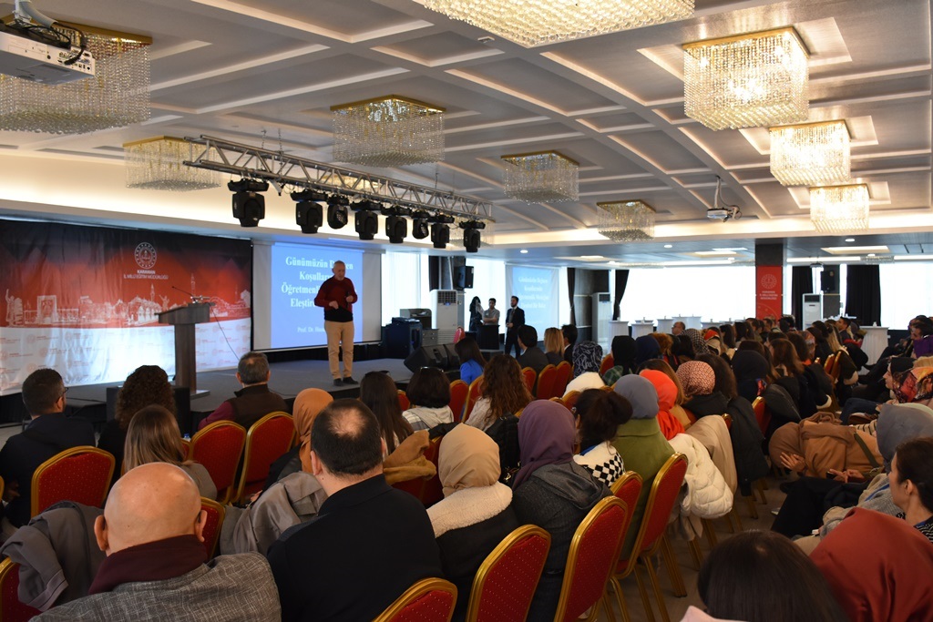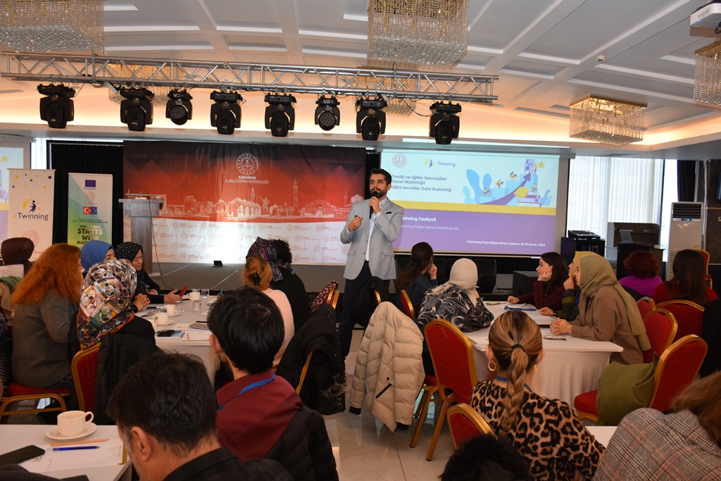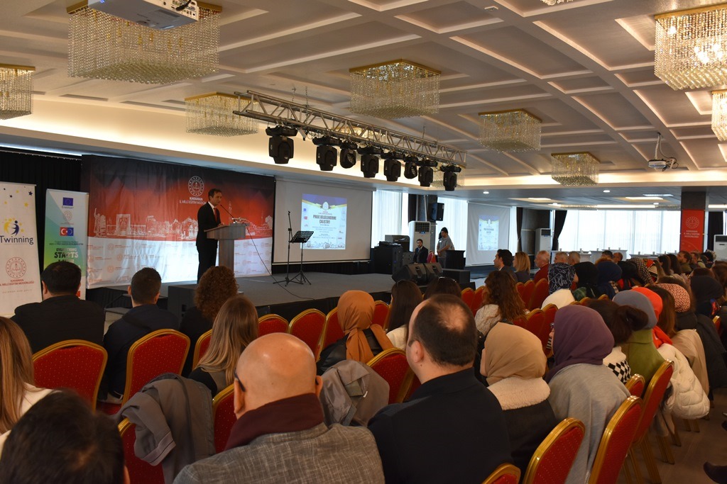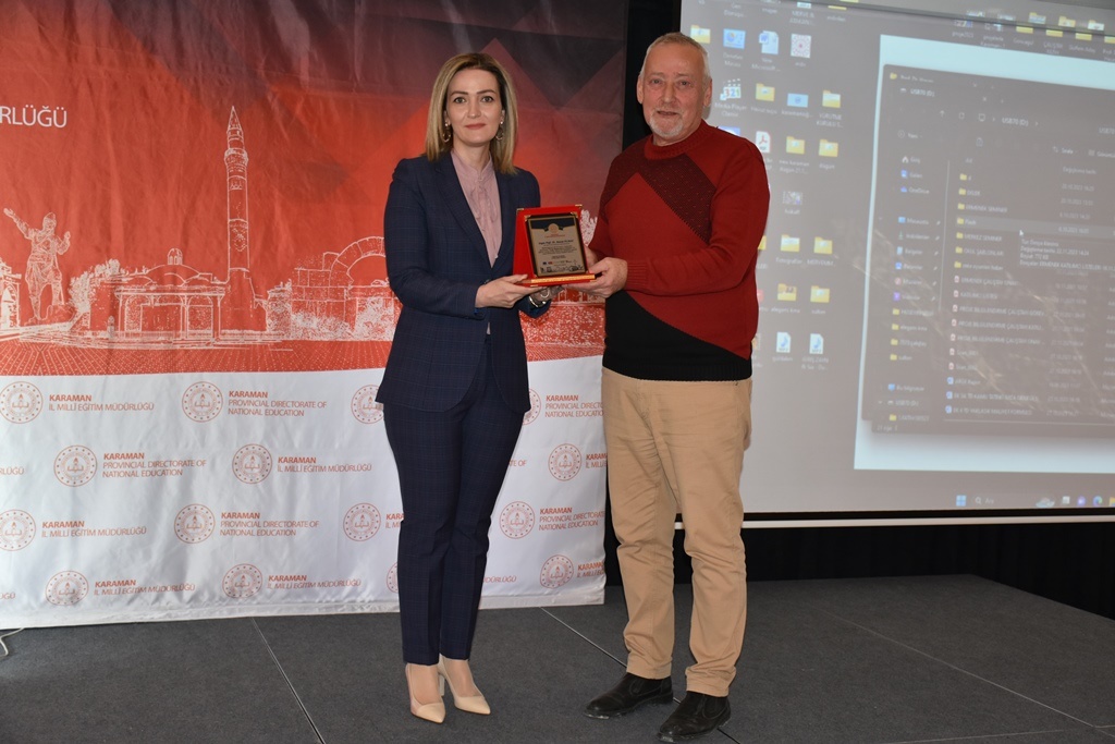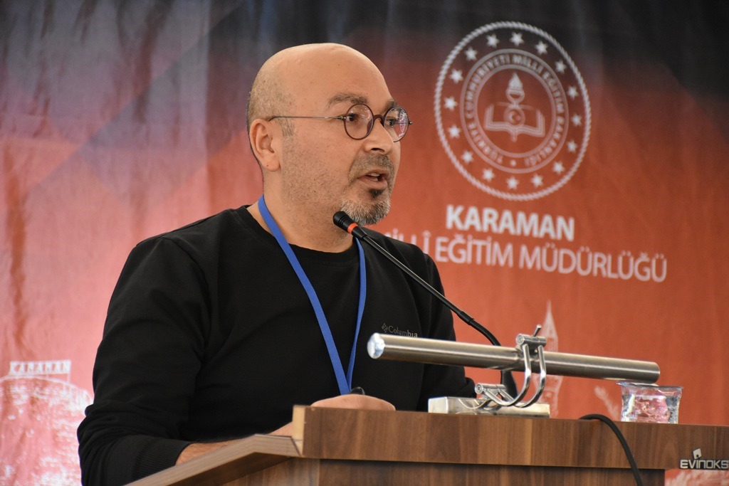 New Karaman Otel’de 29-30 Kasım 2023 tarihinde gerçekleştirilen Proje Bilgilendirme Çalıştay’ı AR-GE çalışmaları ve ‘Projelerle Karaman’ tanıtım videosunun gösterimi ile başladı. Çalıştayın açış konuşmasını İl Millî Eğitim Müdürü Mehmet Çalışkan yaptı.Proje Bilgilendirme Çalıştay’ının Karaman eğitim camiasına hayırlı olması dileğiyle konuşmasına başlayan İl Müdürü Mehmet Çalışkan, çalıştayın öğretmenlere meslekî anlamda önemli katkılar saylayacağını ifade etti. Çalışkan, “Geniş bir kalıtımın sağlanması ve gönüllü olarak bu çalıştaya katılmanız bizleri mutlu etti. Bu çalışmanın yansımalarını sizler meslekî anlamda yaşarken alanda yani sınıflarda sizlerin aracılığıyla öğrencilerimize de önemli katkılar saylayacağını düşünüyorum. İki gün sürecek çalıştayımızın düzenlenmesinde emeği geçen başta Müdür Yardımcımız İsmail Kılınç olmak üzere AR-GE birimindeki ekip arkadaşlarımıza ve katılımızdan dolayı sizlere teşekkür ediyorum.” dedi.İl Millî Eğitim Müdürü Mehmet Çalışkan’ın konuşmasının ardından Necmettin Erbakan Üniversitesi Ahmet Keleşoğlu Eğitim Fakültesi Eğitim Bilimleri Bölümü Rehberlik ve Psikolojik Danışmanlık Anabilim Dalı Öğretim Üyesi Prof. Dr. Hasan Yılmaz, “Günümüzün Değişen Koşullarında Öğretmenlik Rollerimize Eleştirel Bir Bakış" adlı konuşmayı yaptı.