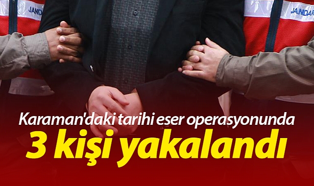 Karaman Jandarma Komutanlığı'nın tarihi eser kaçakçılığı ile mücadele kapsamında gerçekleştirdiği operasyon sonucunda 3 şüpheli yakalandı.