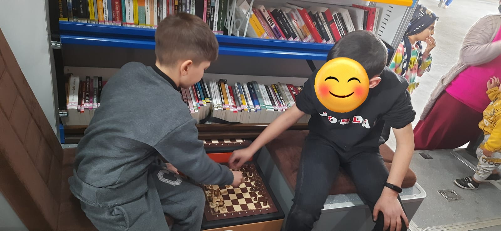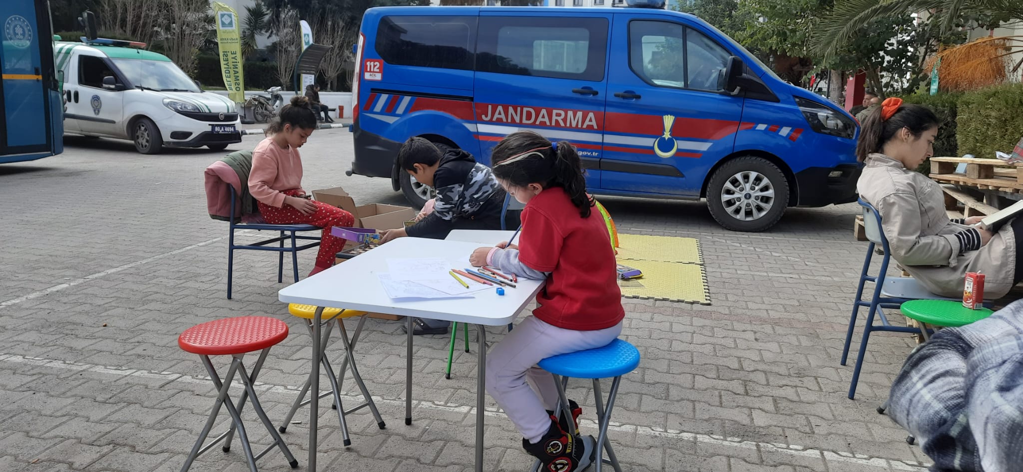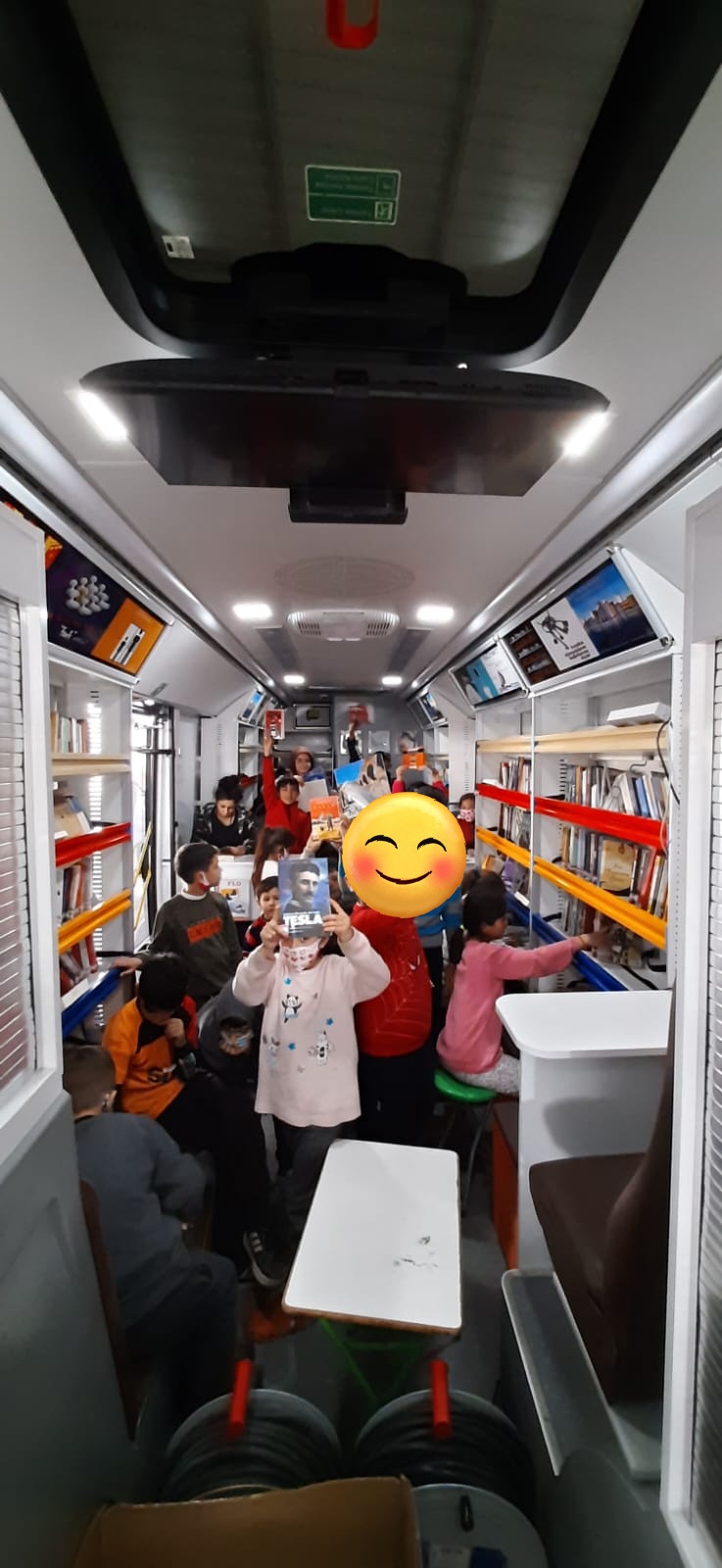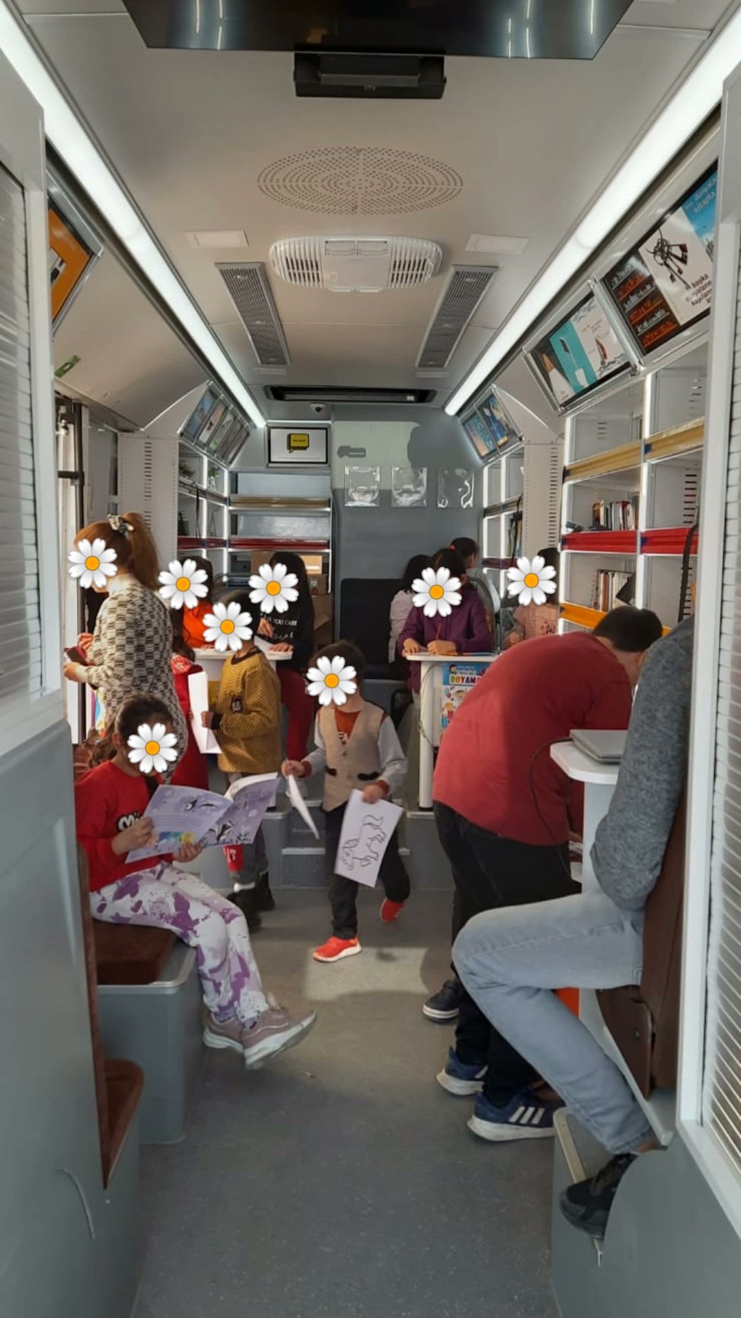Kültür ve Turizm Bakanlığı koordinesinde Karamanoğlu Mehmetbey İl Halk Kütüphanesi Müdürlüğü hizmetinde kullanılan gezici kütüphane Osmaniye'de depremzede çocuklarla buluştu.