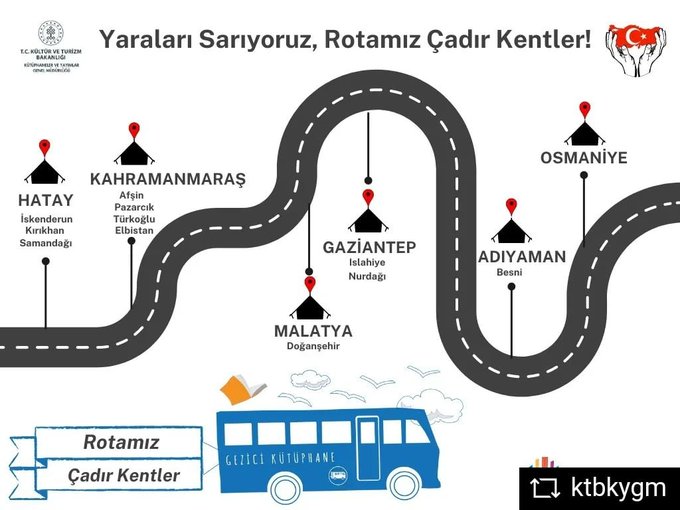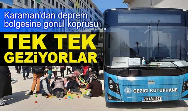 Kahramanmaraş merkezli deprem 10 ilde büyük yıkıma neden oldu.Karaman'ın deprem bölgesine ve depremzedelere yapılan yardımların yanı sıra sosyal desteği de devam ediyor. Karaman'dan giden Turizm ve Kültür Bakanlığı koordinesinde Karamanoğlu Mehmetbey İl Halk Kütüphanesi Müdürlüğü hizmetinde kullanılan gezici kütüphane Osmaniye'de çadır kentte yaşayan depremzede aile ve çocuklara sosyal destek çalışmalarında bulundu. Karaman gezici kütüphanesi deprem felaketi nedeniyle çadır kente yerleşen aileler ve çocuklarla buluşarak afetin olumsuz etkilerine karşı sosyal destek verdi.Gezici kütüphane araçlarıyla deprem bölgesine giden Karaman ekibi bölgede yaşayan aile ve çocukların kitap ihtiyaçlarını karşılayarak onlara sosyal ortam oluşturdular.Gezici kütüphane Osmaniye'den sonra Adıyaman,Gaziantep,Malatya,Kahramanmaraş ve Hatay'a gidecek.