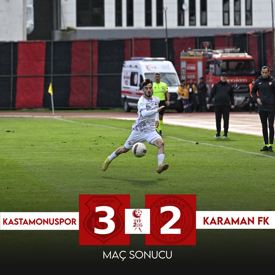 Karaman FK, ligde konuk olduğu Kastamonuspor karşısında 1-2 öne geçmesine rağmen maçı 3-2 kaybetti.