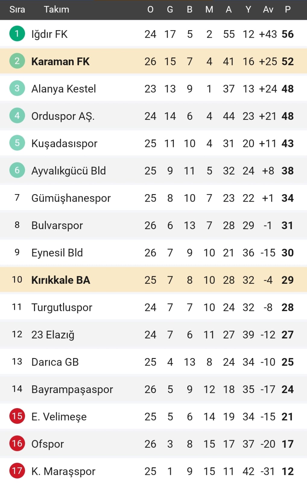 Karaman Futbol Kulübü yara almaya devam ediyor. Ligin ikinci yarısına istediği gibi başlayamayan Karaman FK, rakiplerinden Alanya'nın berabere kaldığı, Iğdır'ın da kazandığı haftada 2 puan kaybetti.Kemal Kaynaş Stadyumunda oynanan mücadelenin ilk yarısını 0-1 geride tamamlayan Karaman FK, uzatma dakikalarında bulduğu gol ile maçı 1-1 berabere tamamladı. Karaman FK, ligde maç fazlasıyla 52 puanda kalarak ikinci sıradaki yerini korudu.Kırıkkale BA'nın golünü 41. dakikada Talha Aydemir kaydederken, Karaman FK'nın golü 90+8. dakikada Umut Dilek tarafından kaydedildi. Maçın 90+6. dakikasında ise konuk ekipten Alaz Gökalp Süme ikinci sarı karttan kırmızı kart görerek oyundan atıldı.Karaman FK, ligde bir sonraki maçını Kuşadasıspor deplasmanında 12 Nisan tarihinde oynayacak.