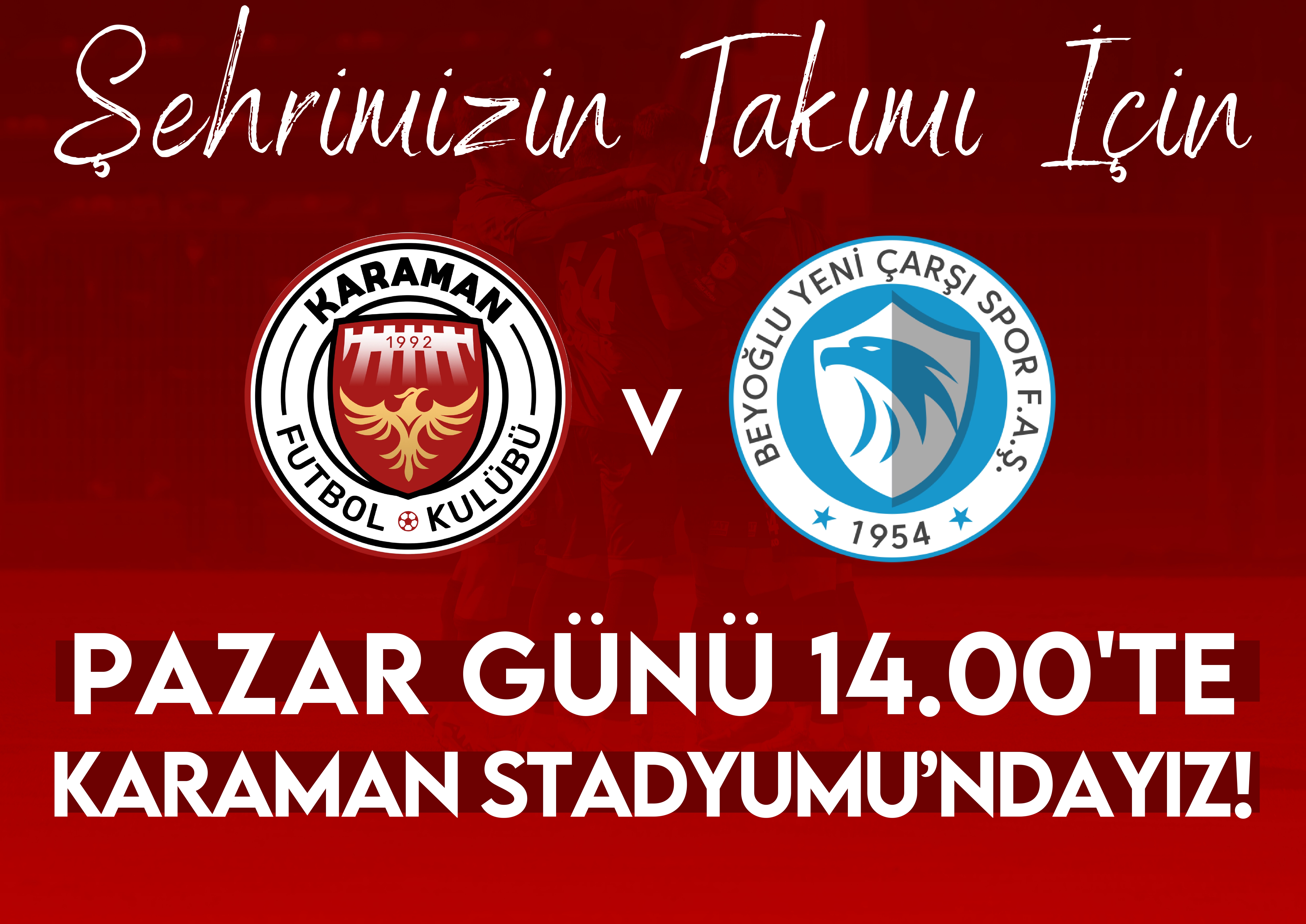 TFF 2. Lig’de pazar günü sahasında Beyoğlu Yeni Çarşı Kulübü’nü ağırlayacak olan Karaman FK'nın Kulüp Başkanı Suat Akbay, ligde üst sıraları yakalayabilmek için taraftarların adamın itici gücüne ihtiyaçları olduğunu belirterek halka maç davetinde bulundu.