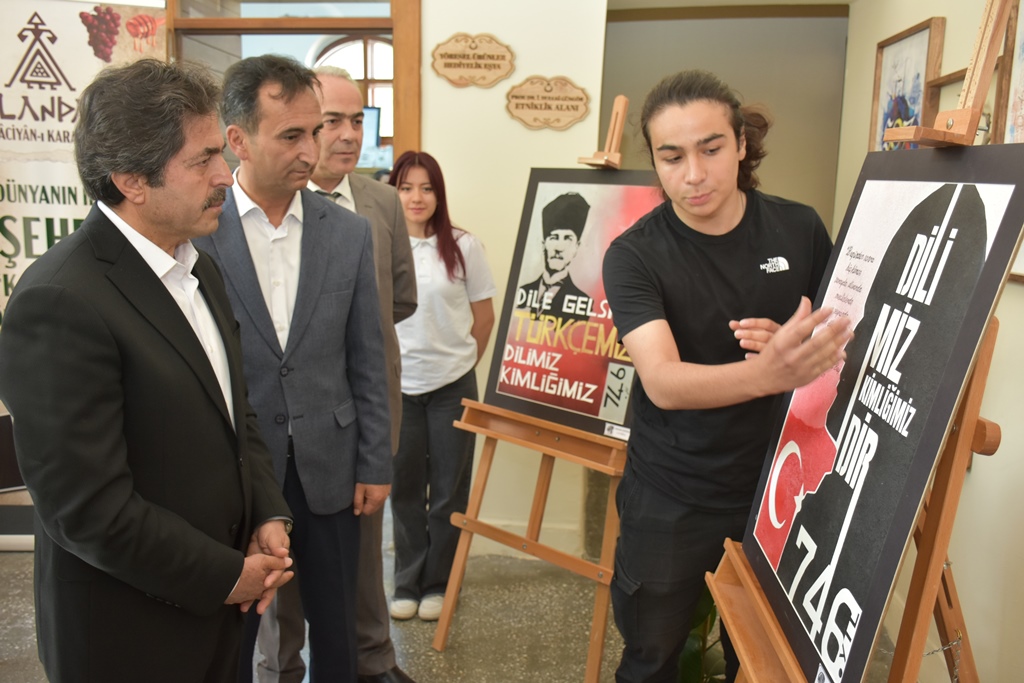 747. Türk Dil Bayramı ve Yunus Emre’yi Anma etkinlikleri kapsamında Türk dilin zenginliği ve çeşitliliği Karaman Güzel Sanatlar Lisesi öğrencilerinin ellerinden özel bir afiş sergisiyle Karaman’ın sanat sahnesine taşındı. ‘Dilimiz Kimliğimizdir’ teması ile oluşturulan sergi, Türk dilinin derinliklerine, renklerine ve melodisine duyulan sevgiyi kutlayarak sanat ve dilin kesişim noktasında izleyicileri büyülü bir yolculuğa çıkarıyor.