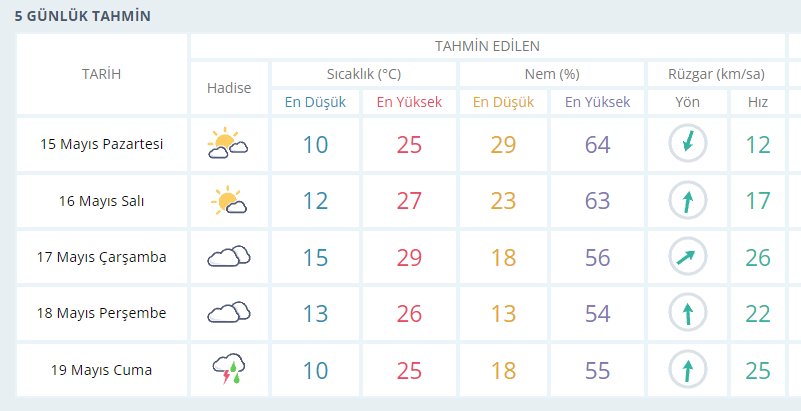 Meteorolojiden alınan bilgilere göre, 15 Mayıs Pazartesi günü ile başlayan yeni haftada, Karaman'da hava sıcaklıklarının yükselişi ön plana çıkıyor.25 derece hava sıcaklığı ortalaması ile başlayan yeni haftada, 17 Mayıs Çarşamba gününe kadar hava sıcaklığı 29-30 derece ortalamasına yükselecek.Perşembe ve Cuma günlerinde ise çok bulutlu havanın hakim olması beklenen Karaman'da, hava sıcaklığının 3-4 derece düşeceği tahmin ediliyor.19 Mayıs Cuma günü ise Karaman için gök gürültülü sağanak yağmurun etkili olacağı tahmin ediliyor.