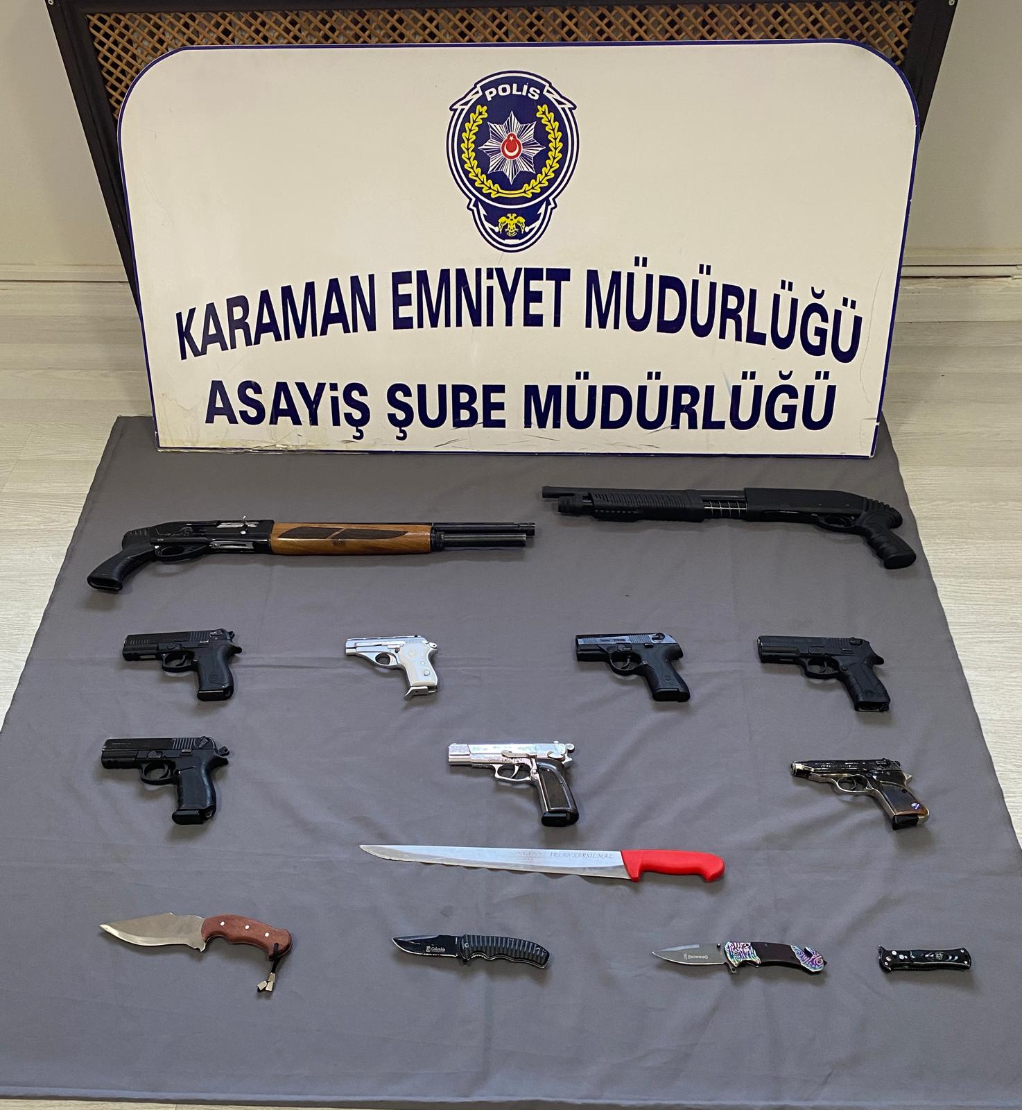 Karaman İl Emniyet Müdürlüğü 07-13 Eylül 2024 tarihleri arasında operasyonlar düzenledi. Karaman İl Emniyet Müdürlüğü tarafından şu açıklamalarda bulundu;Emniyet Müdürlüğümüzce, Karaman Cumhuriyet Başsavcılığı koordinesinde 07-13 Eylül 2024 tarihleri arasında yürütülen çalışmalarda,• 5652 şahsa GBT sorgulaması yapılmış,• Çeşitli suçlardan aranan ‘7’ şahıs yakalanmış,• 7 şahıs adli makamlarca tutuklanmış,• 43 araç sürücüsüne ehliyetsiz/yetersiz ehliyetle araç kullanmaktan, 55 araç sürücüsüne kamunun huzur ve düzenini bozacak şekilde araç kullanmaktan, 11 araç sürücüsüne alkollü araç kullanmaktan işlem yapılmış,• 117 araç trafikten men edilmiş,• 11 sürücü belgesine el konulmuştur. Ayrıca yapılan operasyonlarda,• 7 adet ruhsatsız tabanca,• 2 adet ruhsatsız tüfek,• 5 adet kesici-delici alet,• 14 g uyuşturucu madde,• 6665 adet uyuşturucu hap,• 4 parça halinde çeşitli boyutlarda bonzai emdirilmiş kağıt,• 18 kg kaçak tütün,• 2320 adet doldurulmuş makaron,• 28 adet kesilmiş bandrol ele geçirilmiştir.Vatandaşlarımızın huzur ve güvenliği için mesai mefhumu gözetmeksizin gece-gündüz çalışmaya devam ediyoruz. Kamuoyuna saygı ile duyurulur.