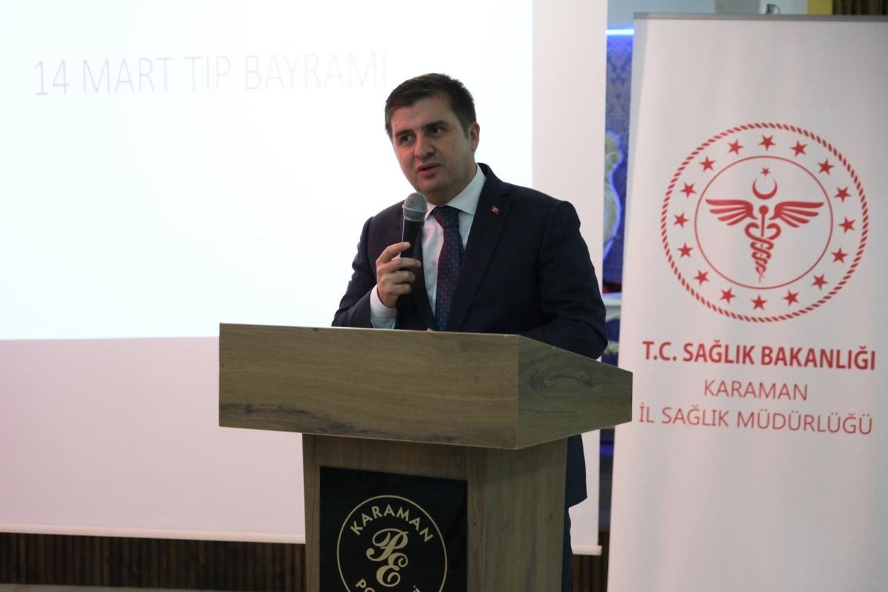 İftar sonrasında Saygı Duruşu ve İstiklal Marşımızın okunması ile başlayan program İl Sağlık Müdürü Dr. Mehmet Serkan Yurdakul’un açılış konuşmasının ardından Vali H.Engin Sarıibrahim’in konuşması ile devam etti.Konuşmasına 14 Mart Tıp Bayramı dolayısıyla doktorlarımızla iftar programında bir arada olmaktan duyduğu memnuniyeti dile getirerek başlayan Vali H.Engin Sarıibrahim “Devlet idaresinin en önemli görevi vatandaşına hizmet edebilmektir. Elbette bu hizmeti ederken elimizdeki imkanlarımız hepsinden önemlidir. Doktorlarımız, sağlık personelimiz en son covid salgınında da görüldüğü gibi bu ülkenin en diri gücüdür. Covid sürecinde doktorlarımızın ve sağlık personelimizin nasıl mücadele ettiklerini, bir vatandaşımızın canı için canlarını nasıl tehlikeye attıklarını hep beraber müşahede ettik. Doktorlarımız gerçekten bu ülkenin yetişmiş en iyi insan güçlerinden birisidir. Bunun değerini ve kıymetini bilmemiz gerekir.” ifadelerini kullandı.Vali H.Engin Sarıibrahim konuşmasının devamında “Cumhuriyetin kuruluşundan bu yana Kore’de, Kıbrıs’ta, terörle mücadelede, Anadolu coğrafyasının değişik bölgelerinde her şekilde hizmet eden insana hizmet etmeyi kendine şiar edinmiş bütün doktorlarımıza, bütün tıp gönüllülerimize ve tıp emekçilerimize saygılarımı sunuyorum. İnşallah daha iyi günlere, daha güzel günlere hep birlikte ulaşacağımızı ifade ediyor, dünümüzde ve bugünümüzde insanlık için cansiperane çalışan hekimlerimizin 14 Mart Tıp Bayramını kutluyorum" dedi.Programa; Karaman Ak Parti Milletvekilleri Av.Selman Oğuzhan Eser ve Osman Sağlam, Karamanoğlu Mehmetbey Üniversitesi Rektörü Prof. Dr. Mehmet Gavgalı, Vali Yardımcısı Mehmet Yasin Erkan, İl Jandarma Komutanı Kd. Albay Murat Alkan, Karaman Eğitim Araştırma Hastanesi Başhekimi Doç.Dr. Halil İbrahim Taşcı, sağlık yöneticileri ve ilimizde görev yapan hekimler ile aileleri katıldı.
