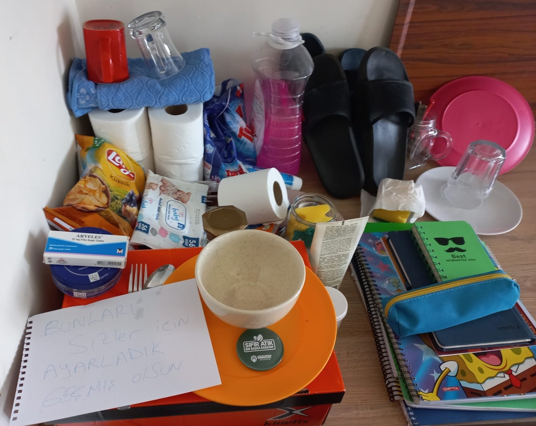 Karaman KYK yurtlarında kalan üniversite öğrencileri, depremzede misafirler için odalarını boşaltırken, anlamlı mesajlar bırakarak ayrıldılar.