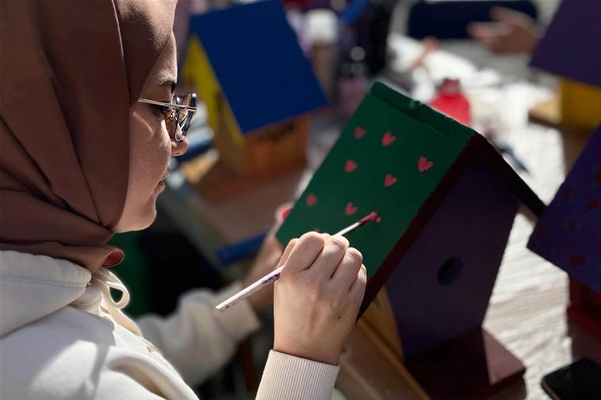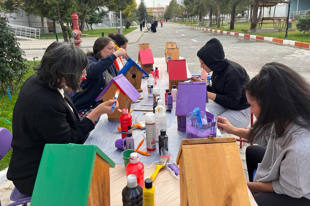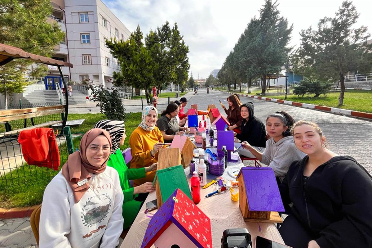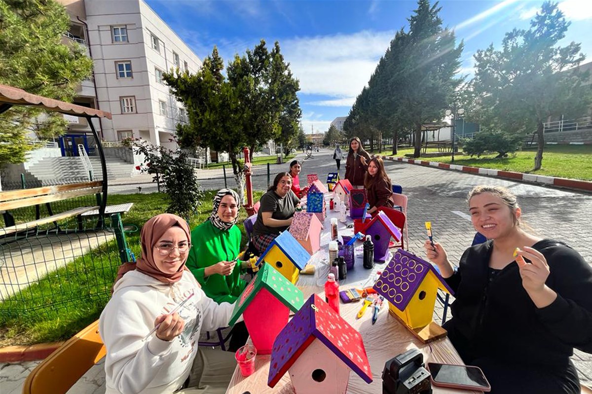 Karaman kız yurdu öğrencileri, yurt bahçesini kuş evleri ile donattı