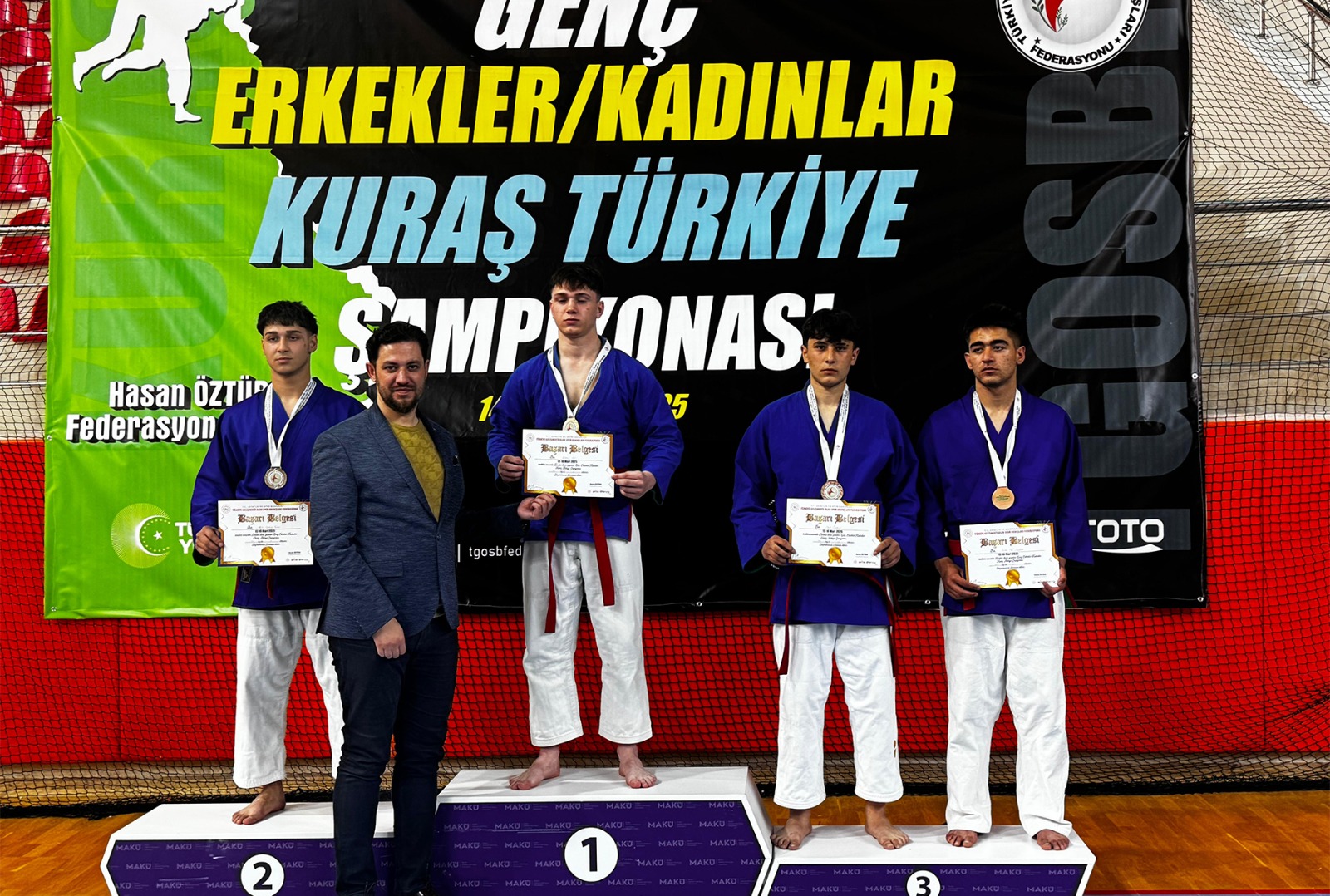 Türkiye Gelişmekte Olan Spor Branşları Federasyonunun 2025 yılı faaliyet takviminde yer alan Gençler Kuraş Türkiye Şampiyonası, Burdur’da düzenlendi.Gençlik ve Spor İl Müdürlüğü judo antrenörü Ahmet Ömre Türe eşliğinde şampiyonaya hazırlanan Karaman ekibi, iki gün süren müsabakalarda başarılı sonuçlara imza attı.Şampiyonada +70 kilo kadınlarda Ayşenur Keskin altın madalya kazanırken, 71 kilo erkeklerde Hüseyin Serper ve +90 kilo erkeklerde İbrahim Sağlamçelik gümüş madalyanın sahibi oldu. 77 kilo erkeklerde ise Yiğit Özmen bronz madalya elde etti.Karaman Gençlik ve Spor İl Müdürü Mustafa Karadeniz, başarılı sonuçlarla dönen sporcuları ve antrenörleri tebrik ederek, “Sporcularımızın elde ettiği bu sonuçlar Karaman spor camiası adına gurur verici. Başarıların devam edeceğine yürekten inanıyorum. Sporcularımızı ve teknik ekibimizi kutluyorum.” ifadelerini kullandı.