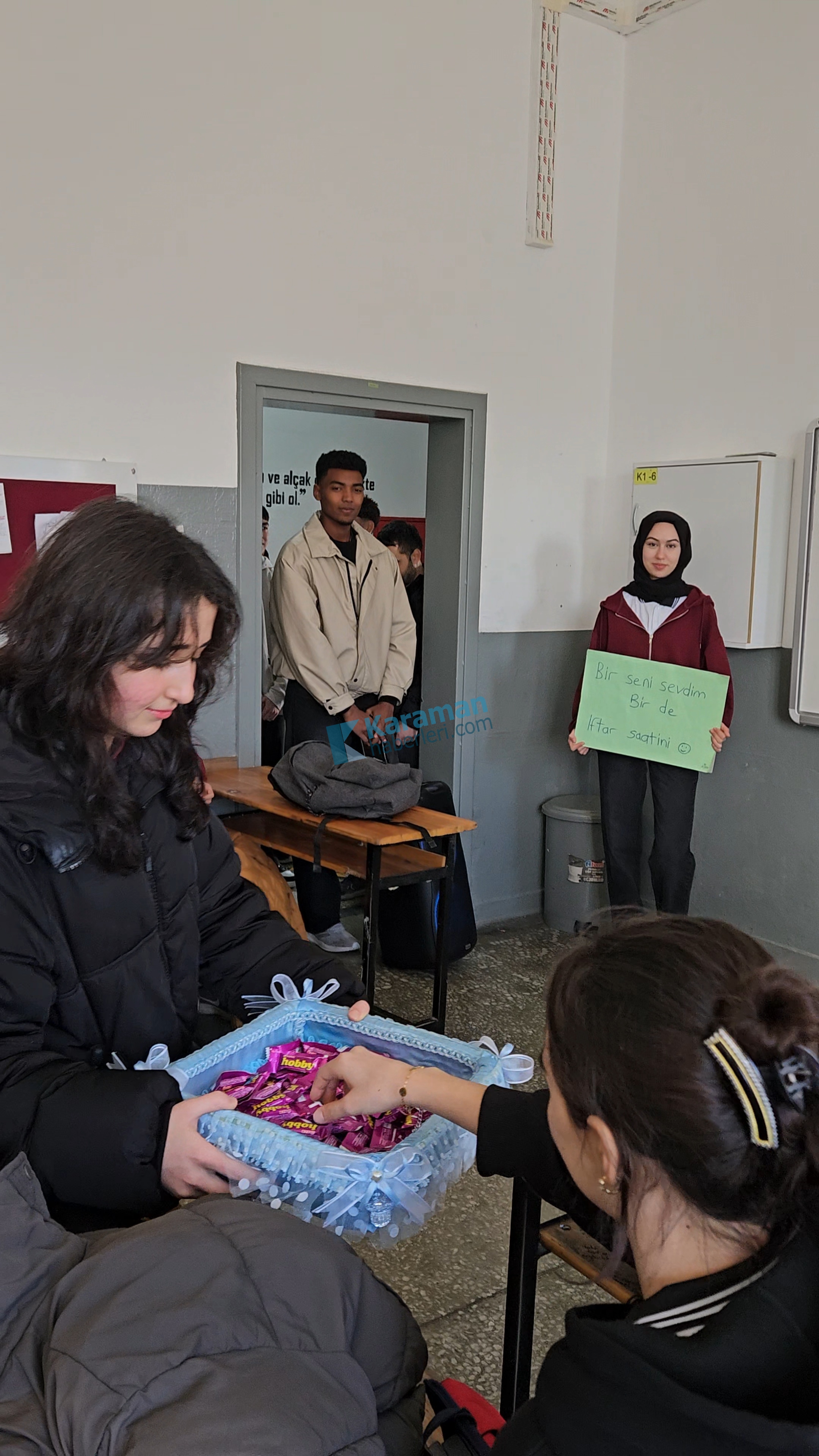 Karaman Lisesi öğrencileri, yürüyüş güzergâhı boyunca esnafı ziyaret ederek “Hayırlı Ramazanlar” dileklerini iletti.